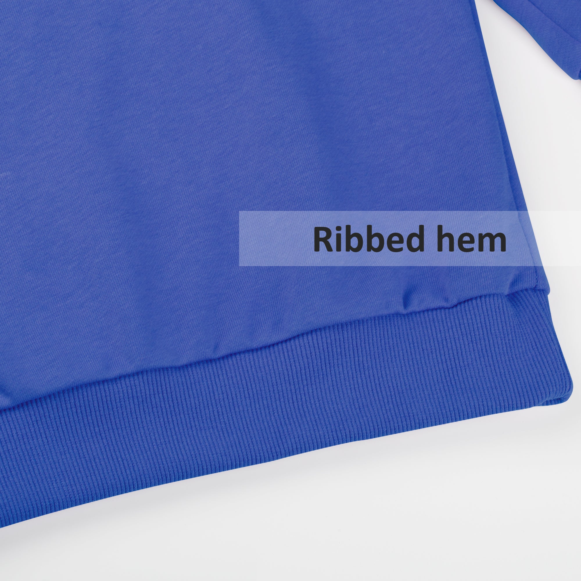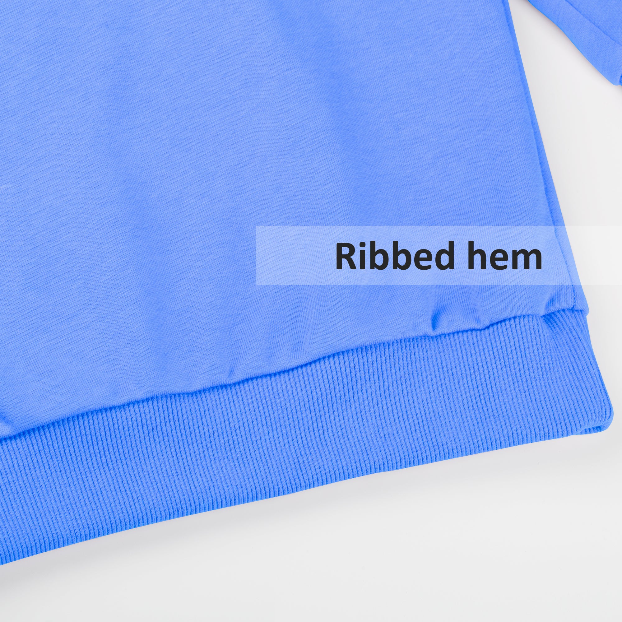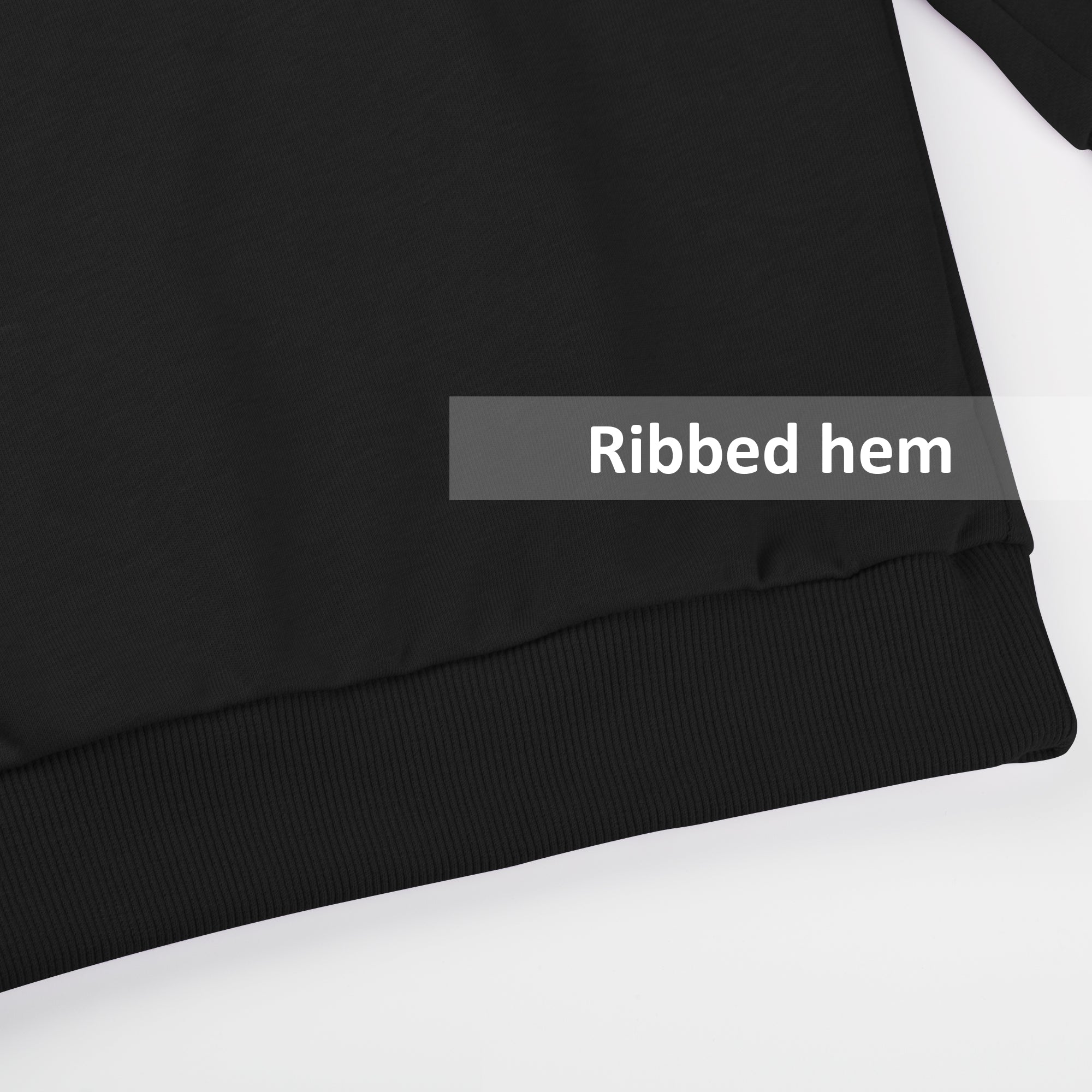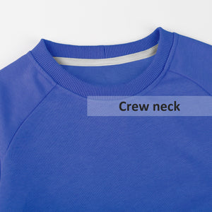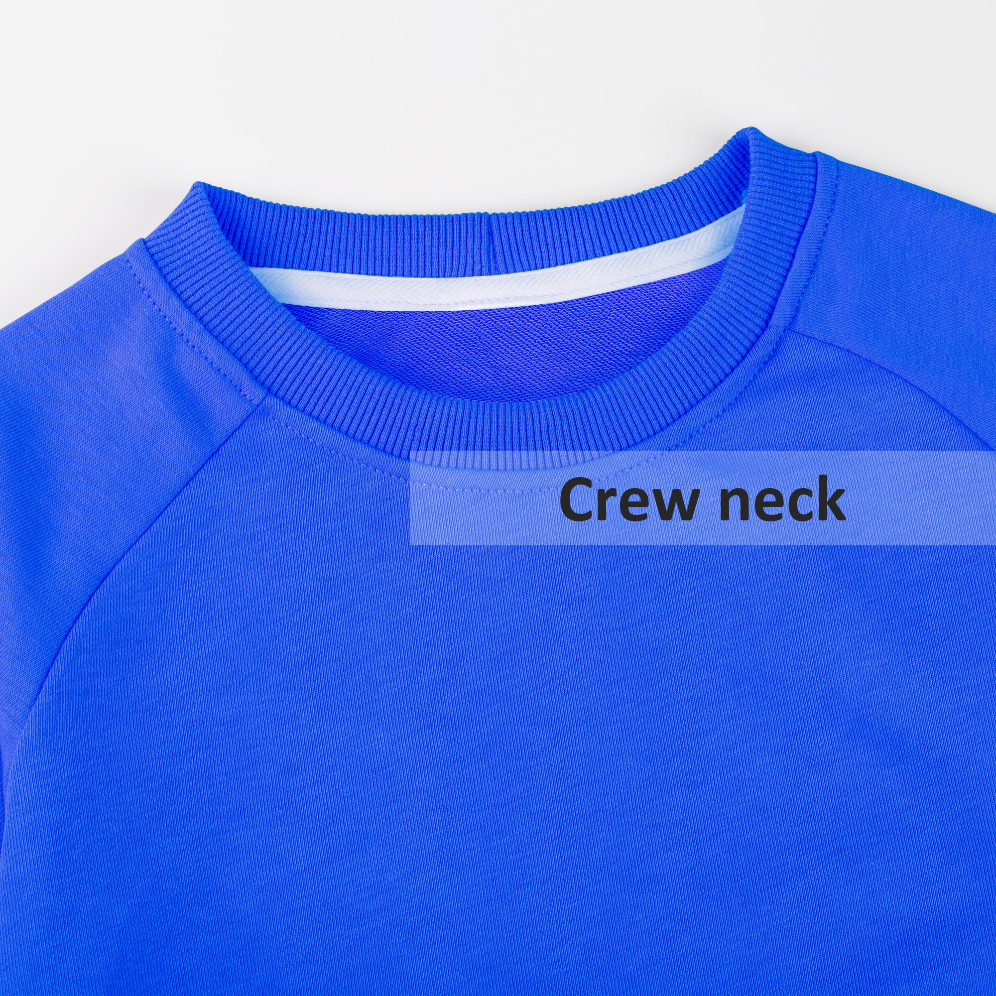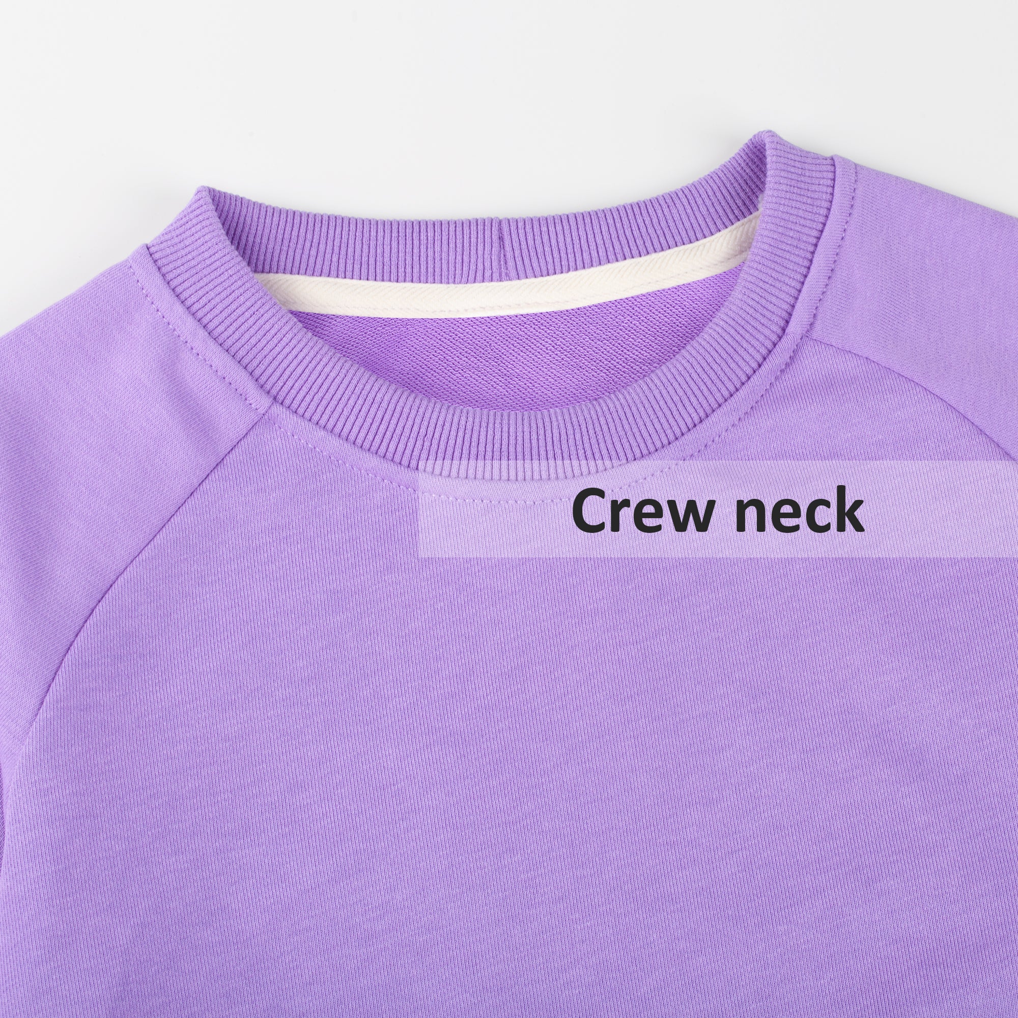 【RELAXED FIT, CREWNECK & RIBBED TRIMS】Classic crew neck with ribbed cuffs and hem. The easy, relaxed cut allows free movement and leaves space to grow—never too tight, never baggy.