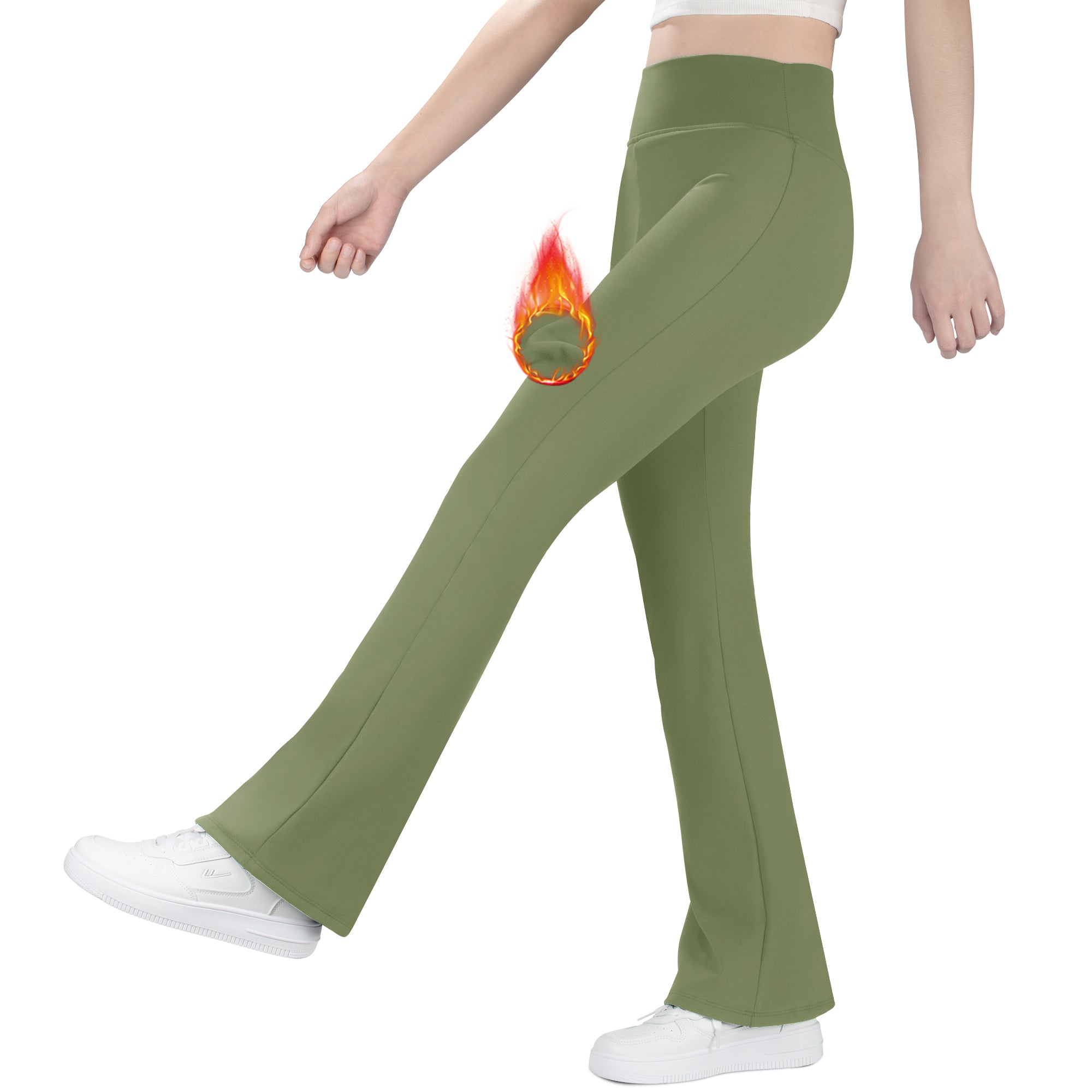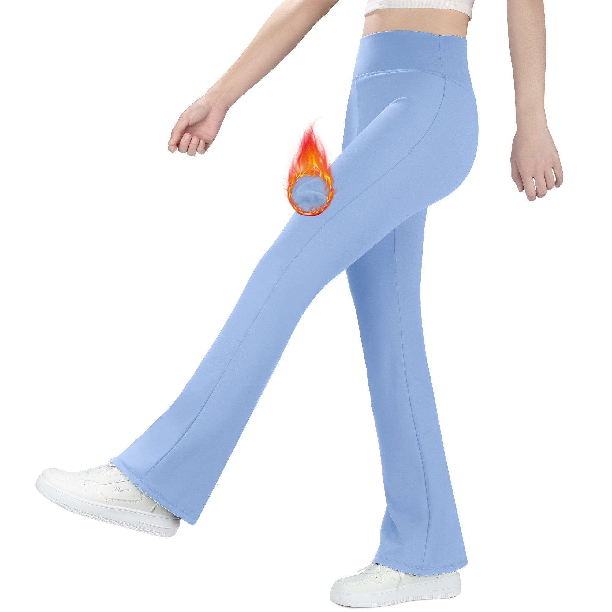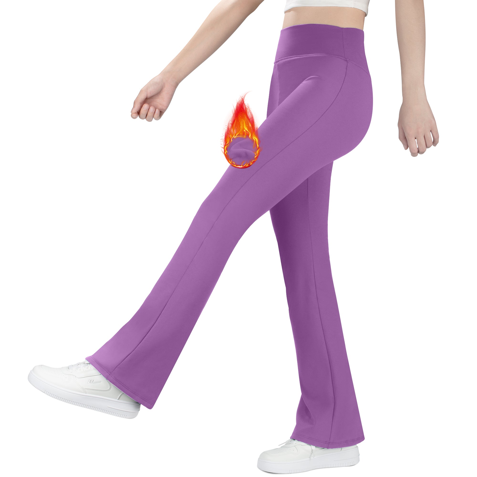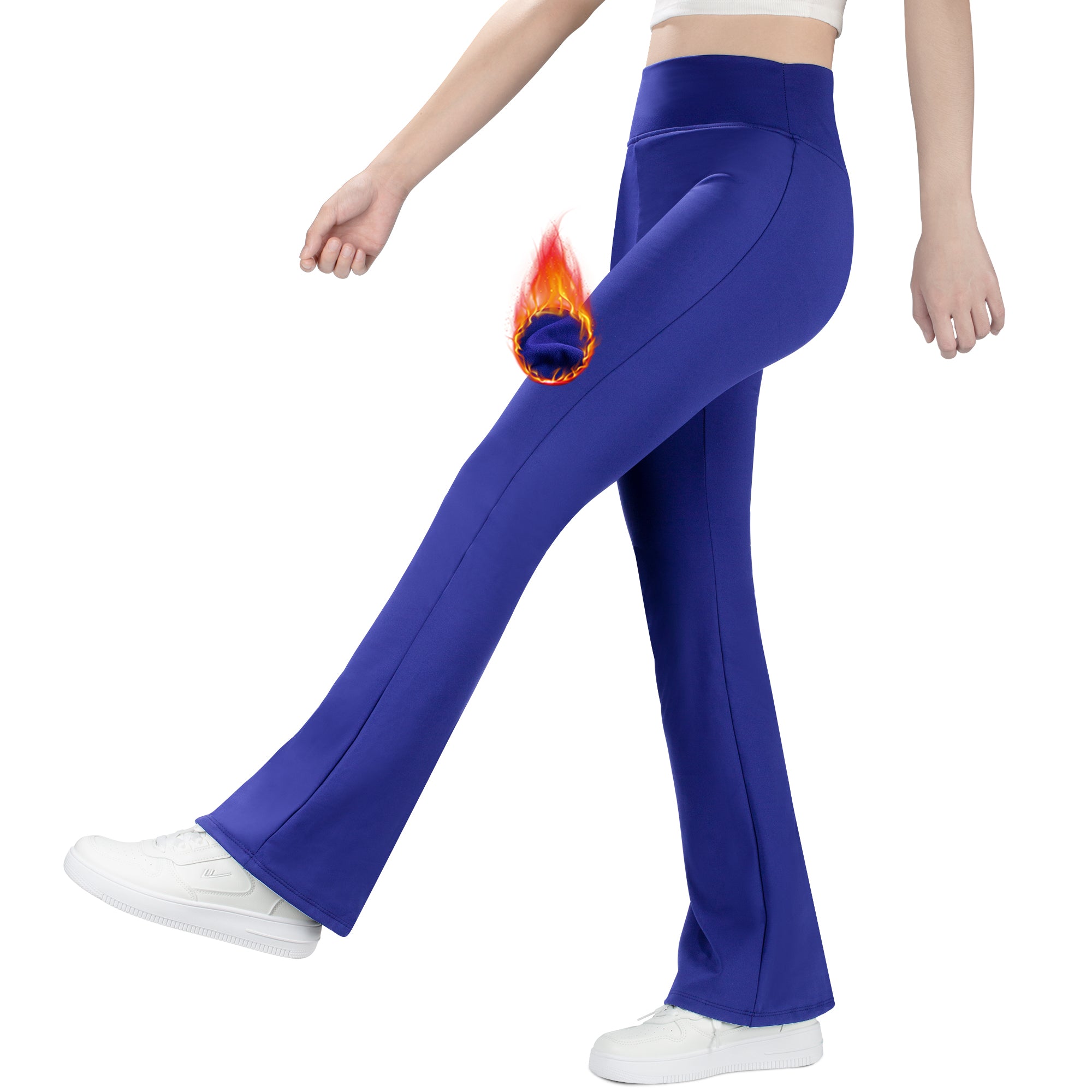 BIG ELEPHANT Fleece Lined Flare Leggings, Girls High Waist Thick Flared Pants for Winter