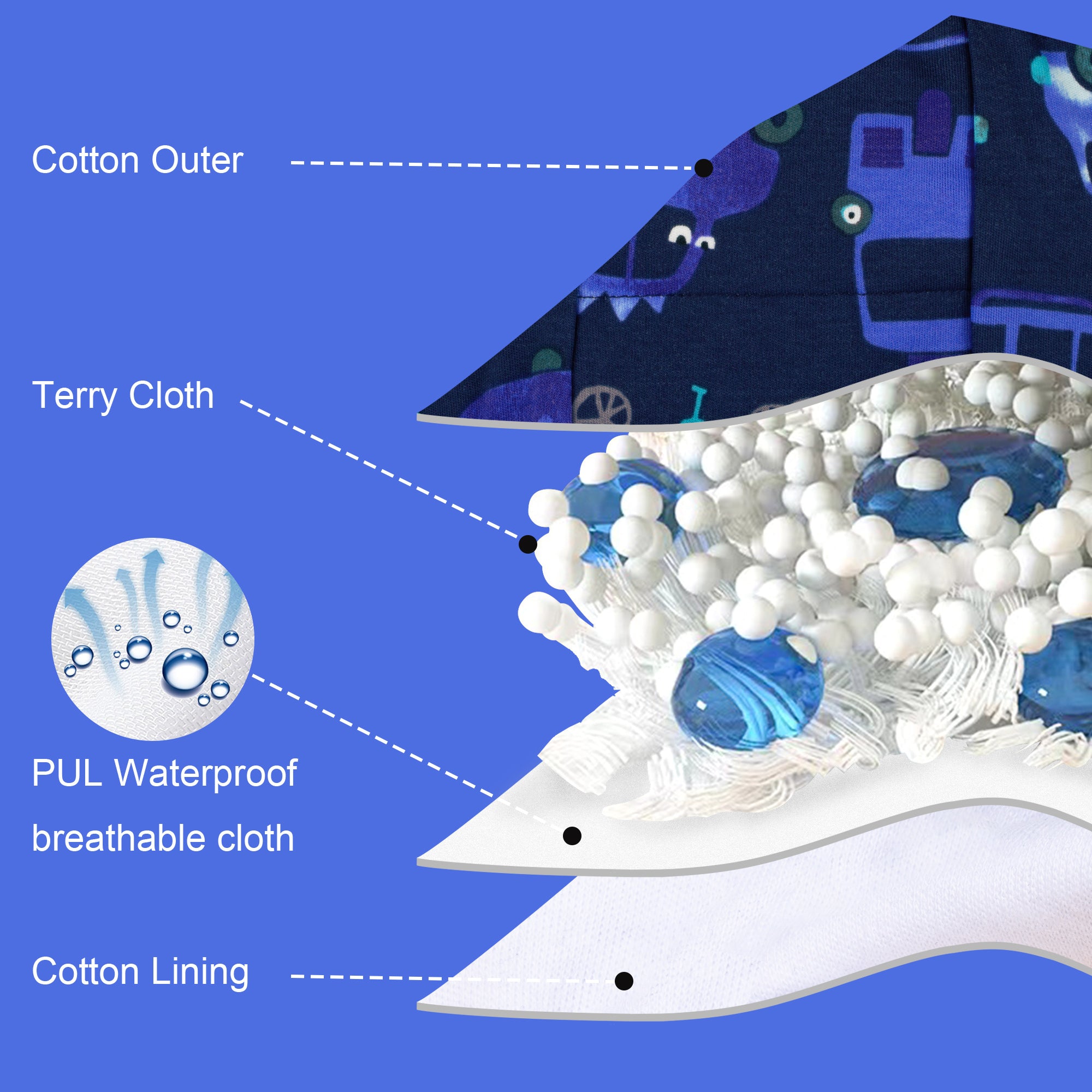 - Premium Quality and Innovation: Our potty training underwear for boys is crafted with eco-friendly, organic materials, including a 100% cotton outer layer and a blend of cotton, and TPU for the inner layers. This combination ensures maximum softness, high urine absorption, and gentle care for sensitive skin, reducing the risk of diaper rash. These underpants are machine-washable, and reusable.
