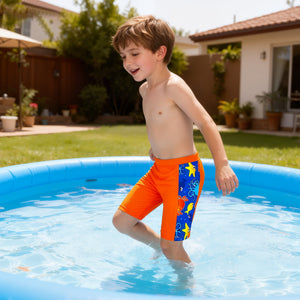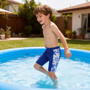 A wide elastic waistband ensures a snug yet comfortable fit that stays securely in place during dynamic movement, whether swimming laps or making quick turns. For a perfect fit, we recommend sizing up if your child is between sizes.