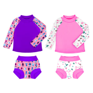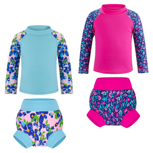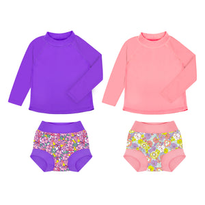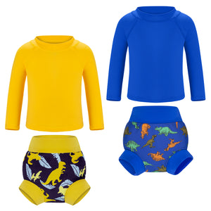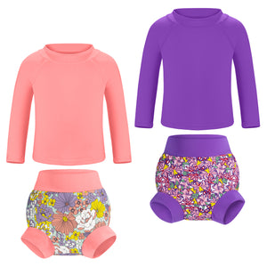 • Easy Care & Lasting Value: Machine washable and durable, this set maintains quality over time. Includes 2 rash guards and 2 reusable swim diapers for extended use.