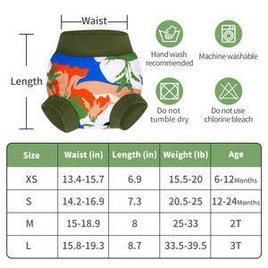 Our adjustable reusable swim diapers come in a range of adorable patterns and designs. These charming styles are sure to delight your baby and add extra fun to swim time. Available in sizes for toddlers aged 6–12 months, 12–24 months, 2 years, and 3 years.