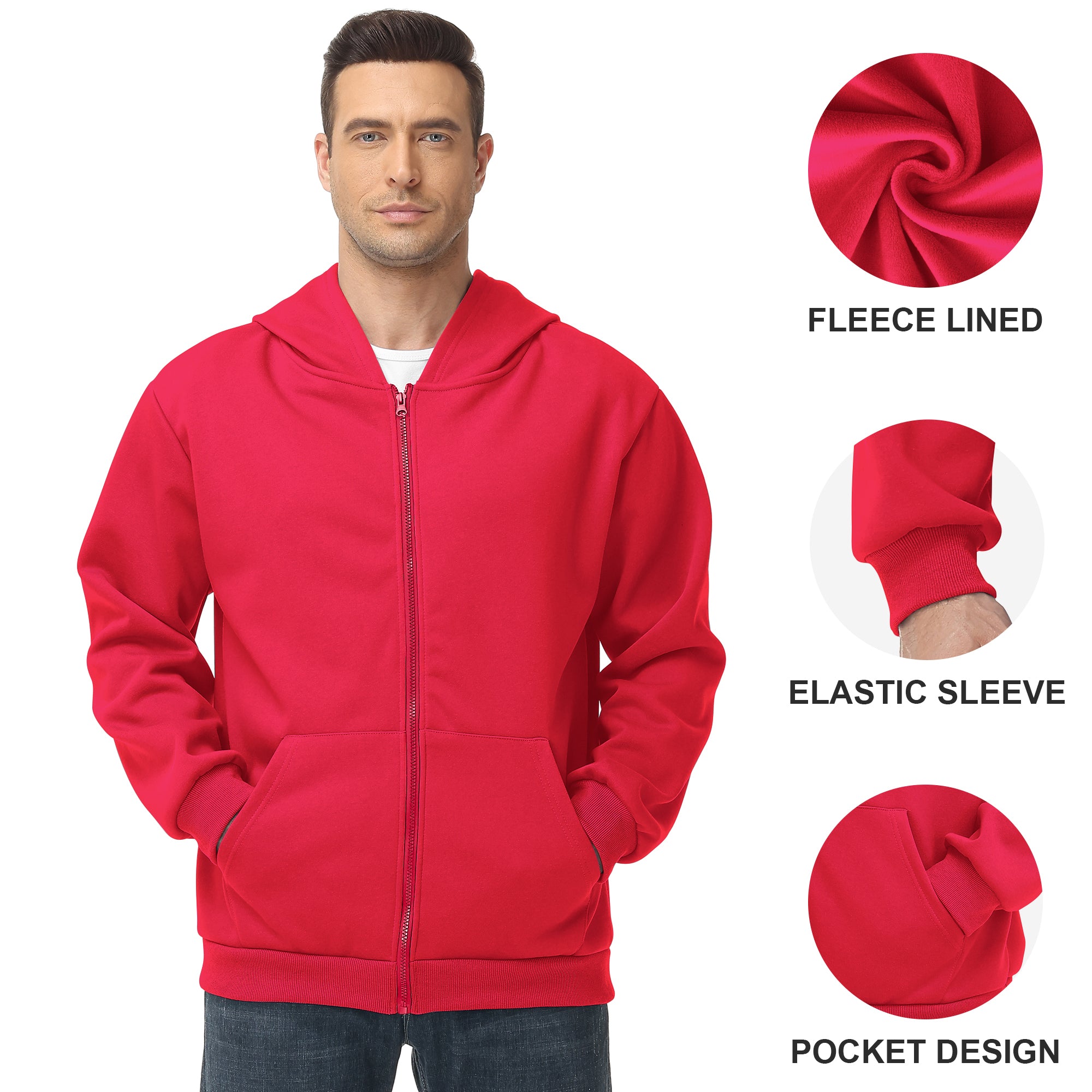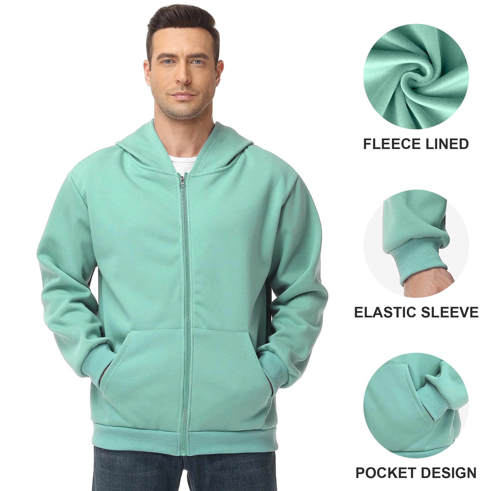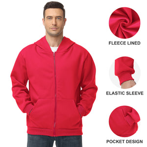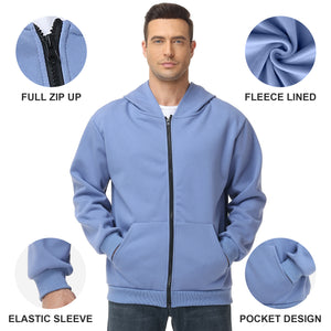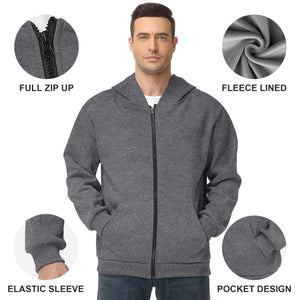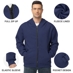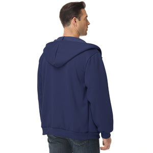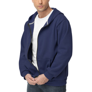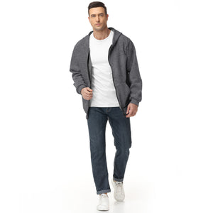 Pepypepy Men's Zip-Up Hoodie – 100% Cotton Fleece-Lined Sweatshirt with Pocket, Perfect for Daily Commuting and Outdoor Activities