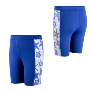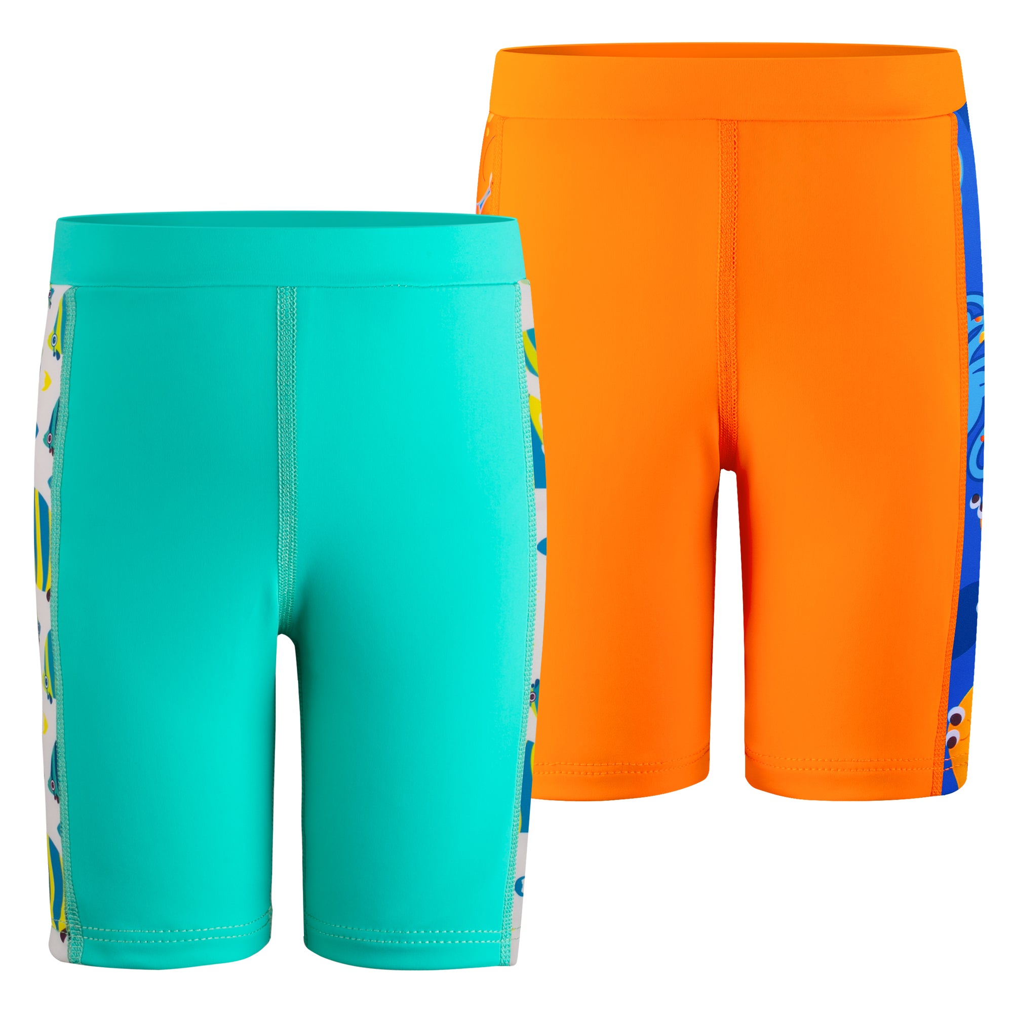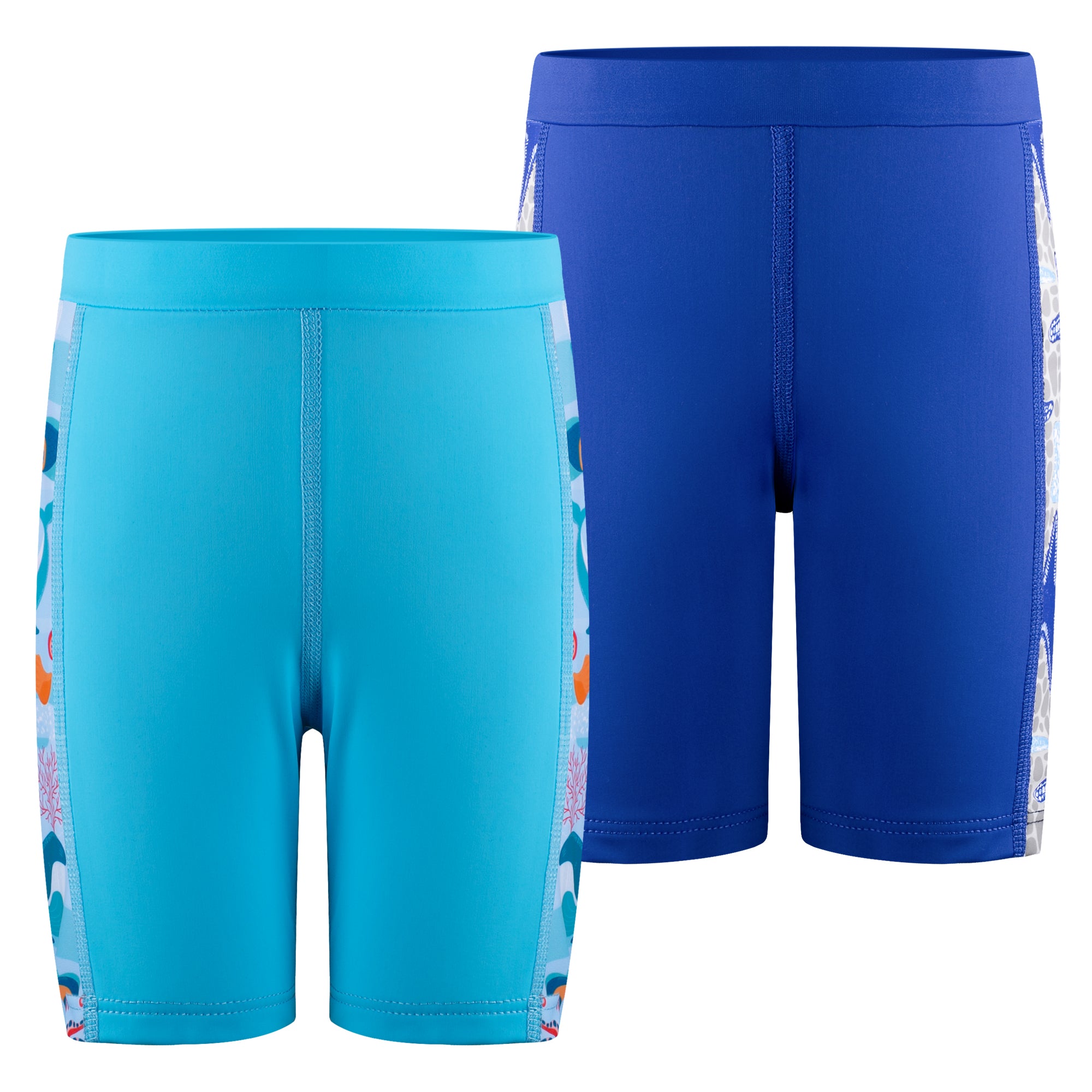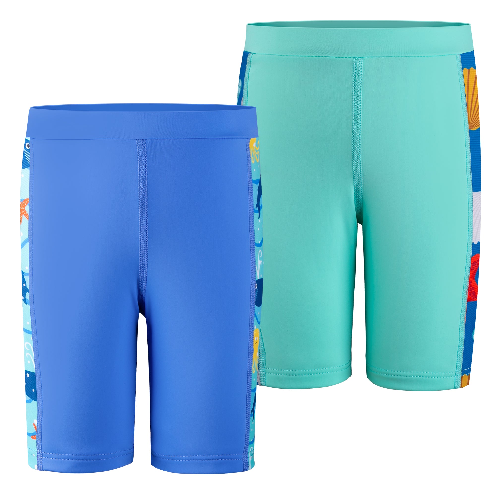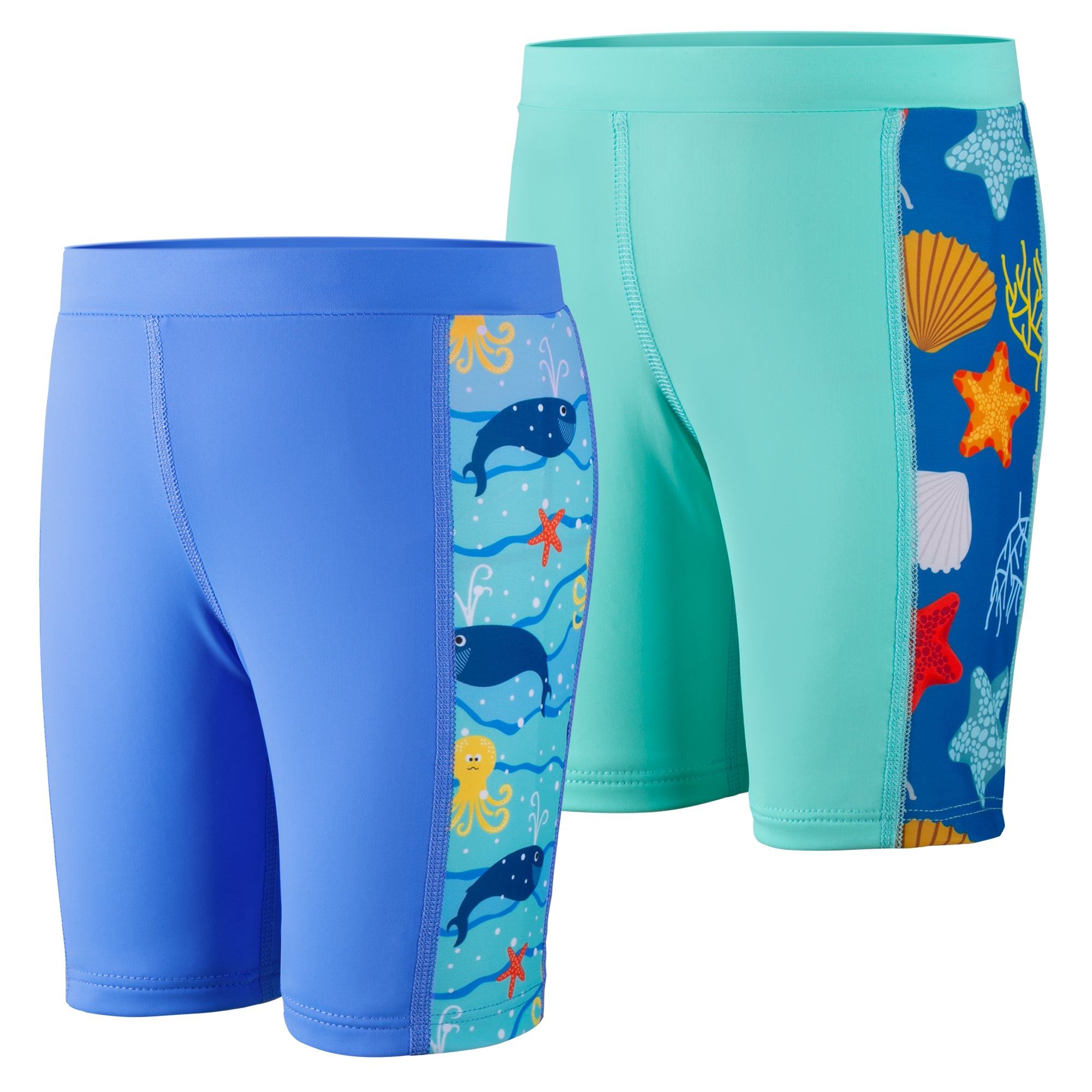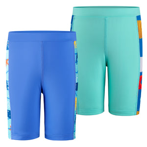 Each value-packed set includes two matching swim jammers, perfect for busy schedules filled with swim classes, competitions, or back-to-back pool days. Featuring playful ocean-themed side prints for a sporty look kids love—and easier spotting for parents.