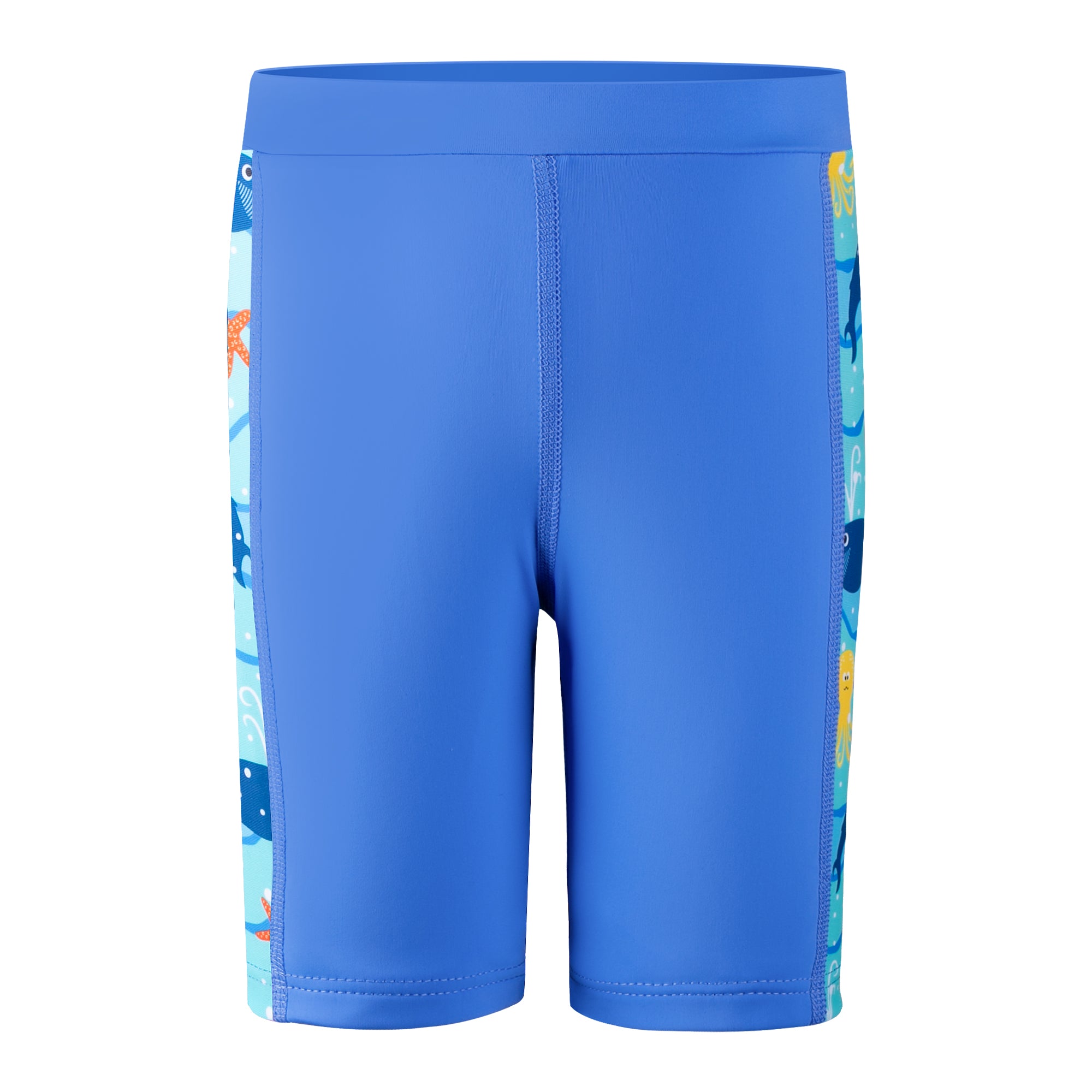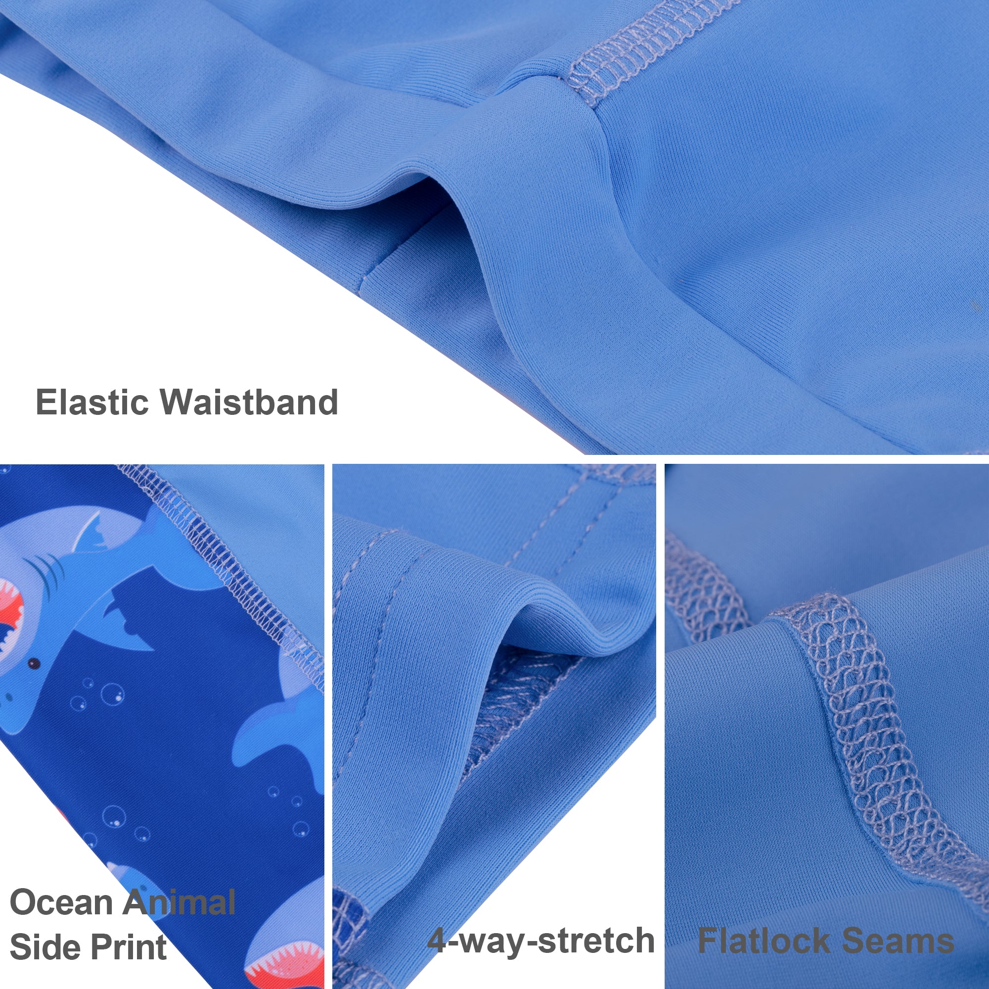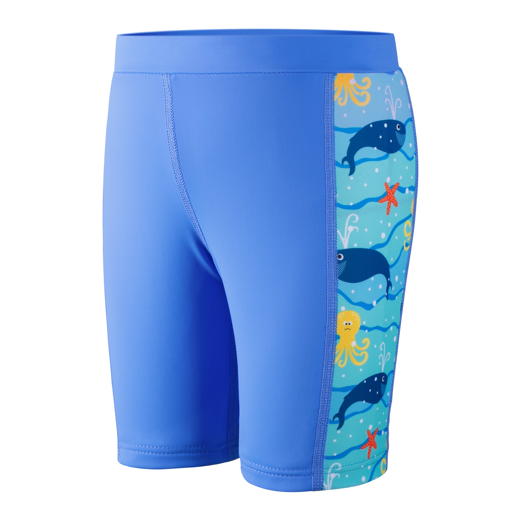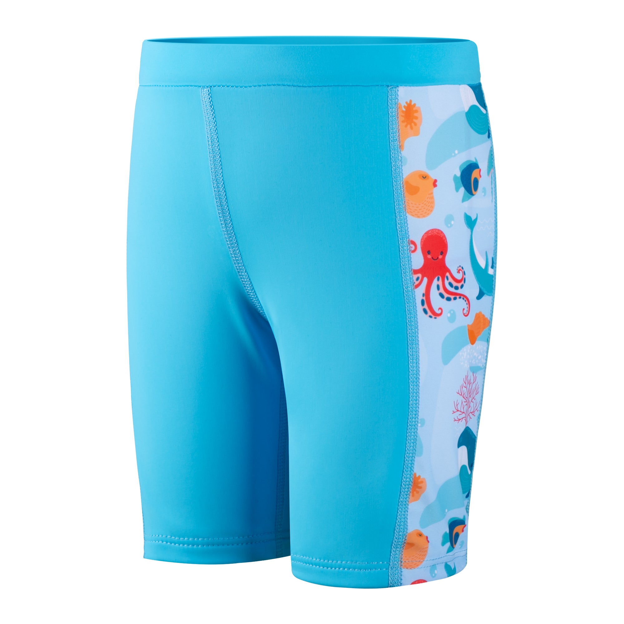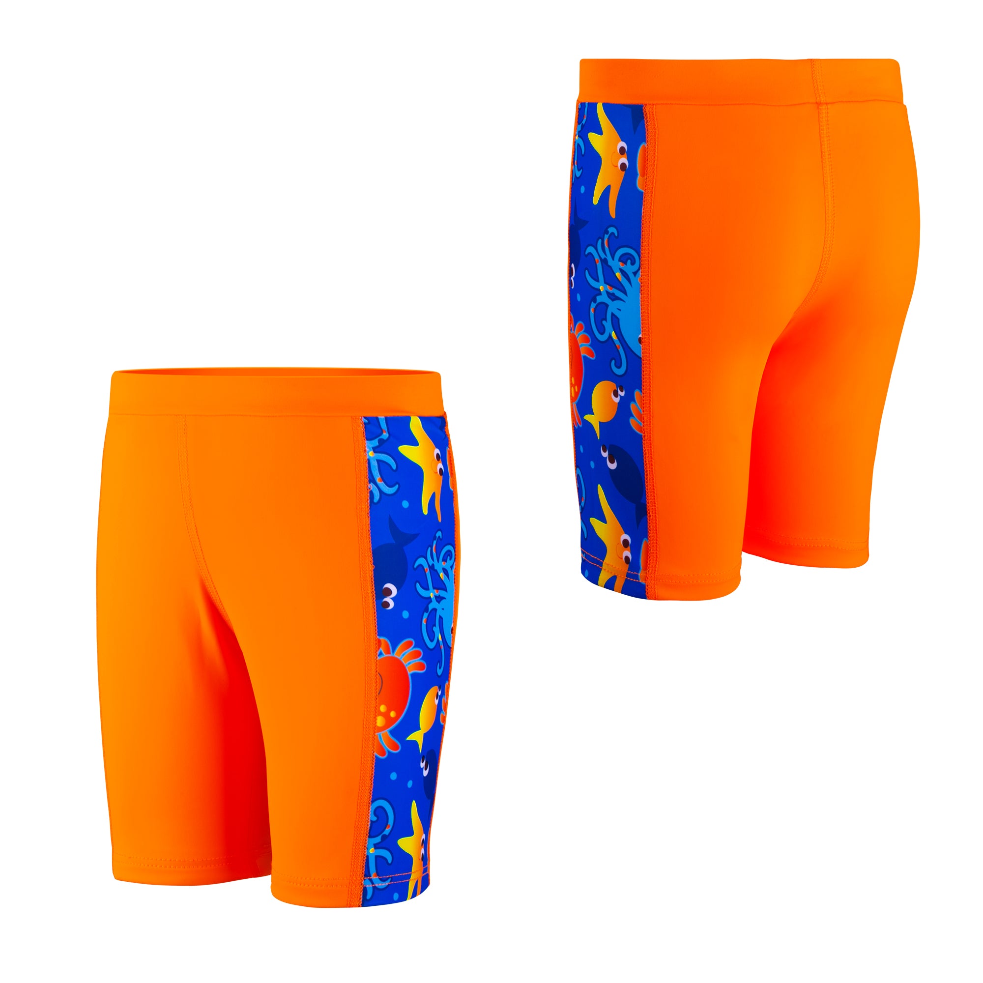 Each value-packed set includes two matching swim jammers, perfect for busy schedules filled with swim classes, competitions, or back-to-back pool days. Featuring playful ocean-themed side prints for a sporty look kids love—and easier spotting for parents.