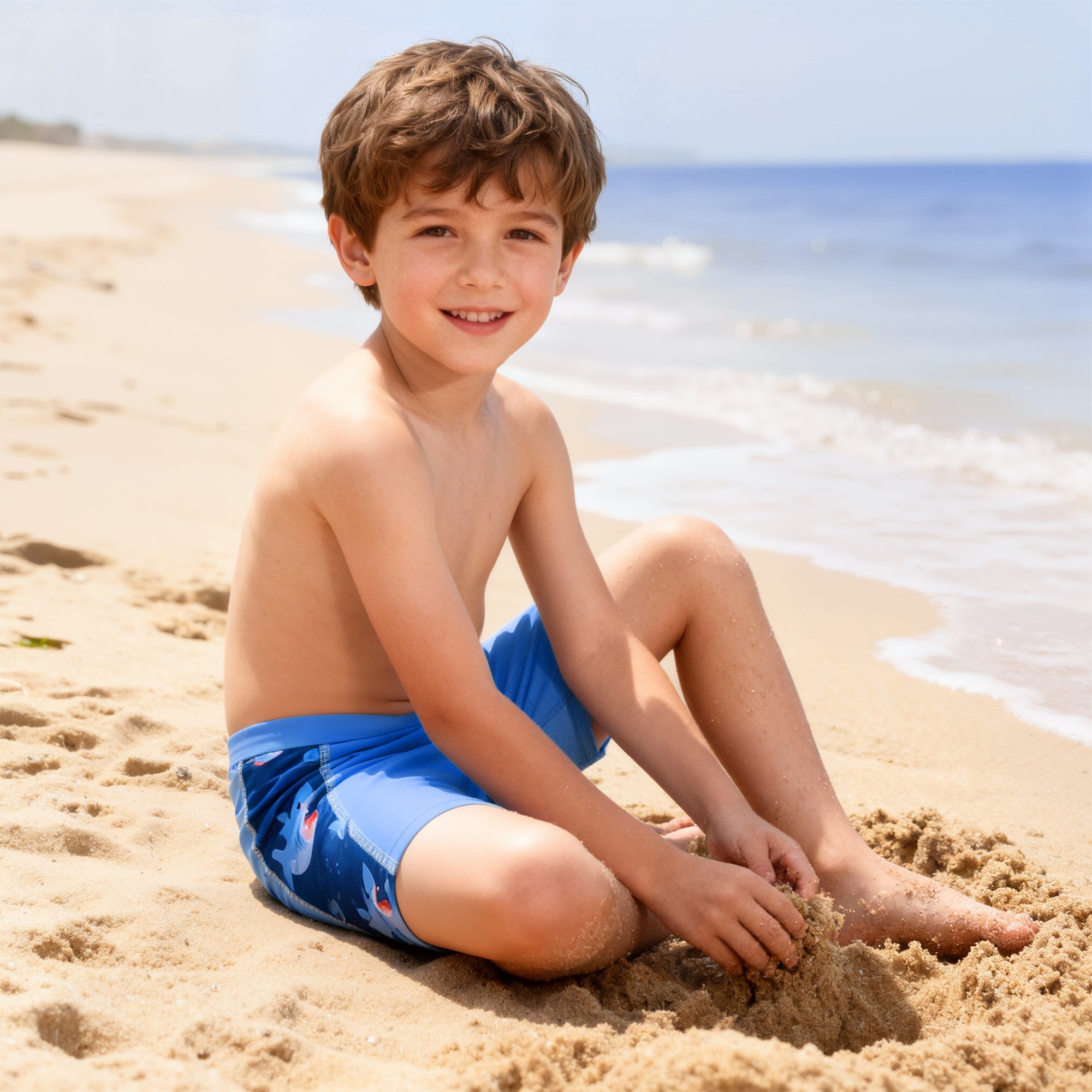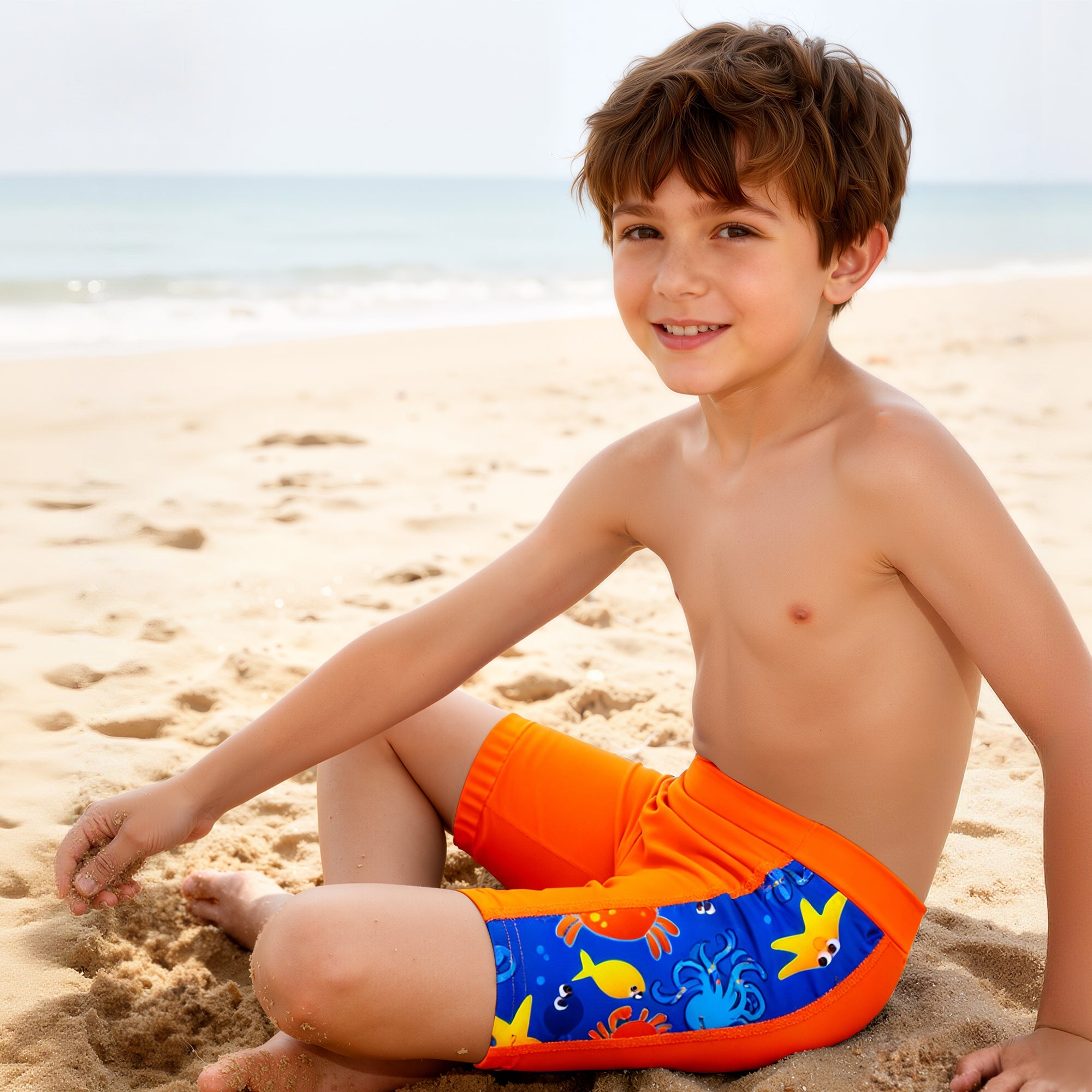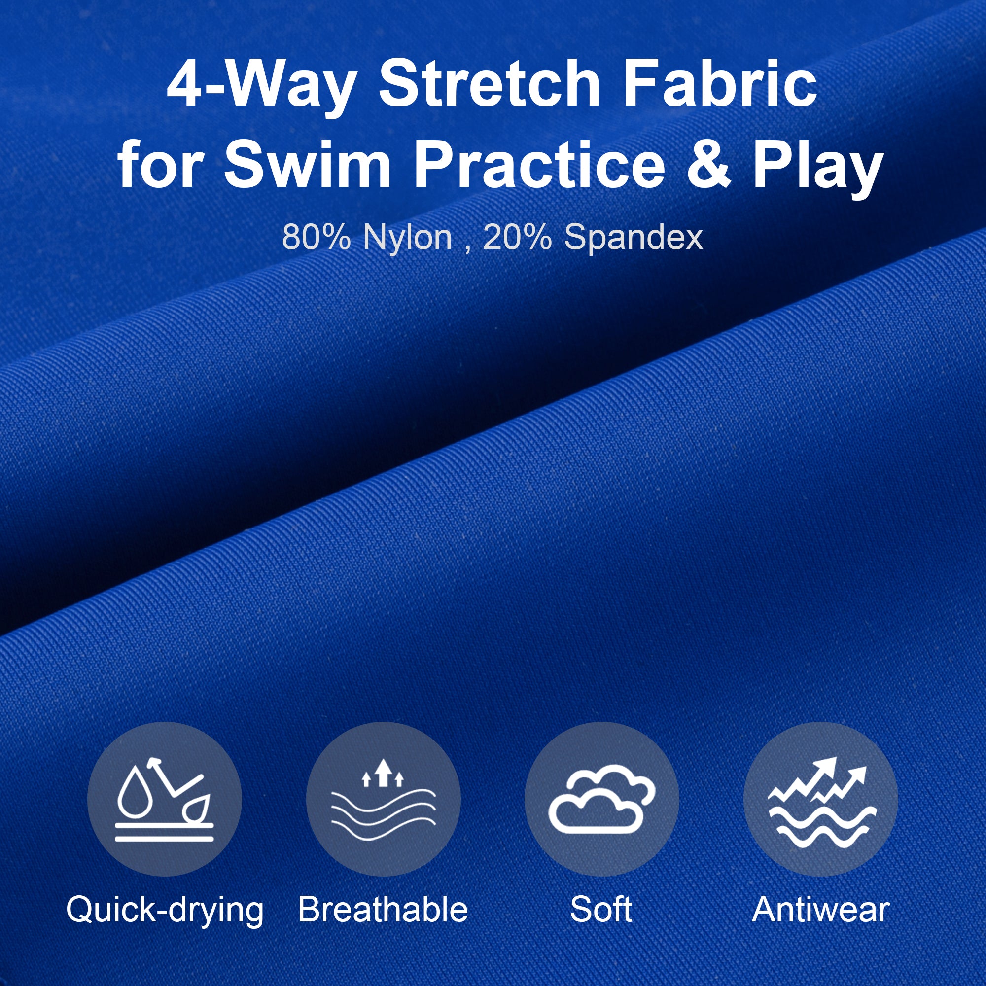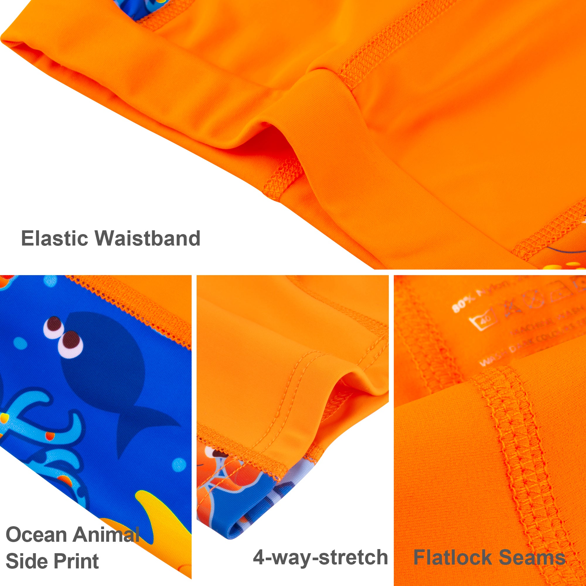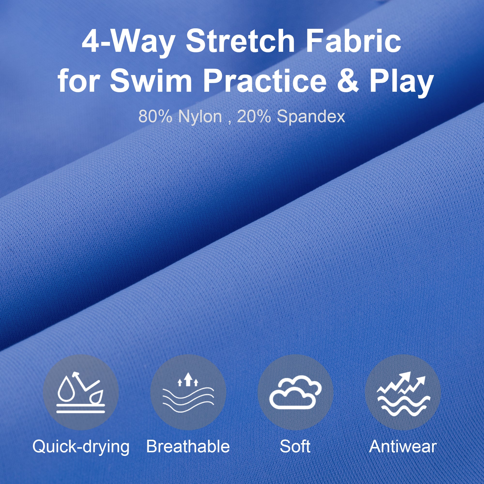 Crafted from a premium blend of 80% nylon and 20% spandex, these boys' swim shorts deliver exceptional softness and four-way stretch. The lightweight, breathable fabric dries quickly and is built to keep up with everything from swim lessons and daily practice to energetic beach play.