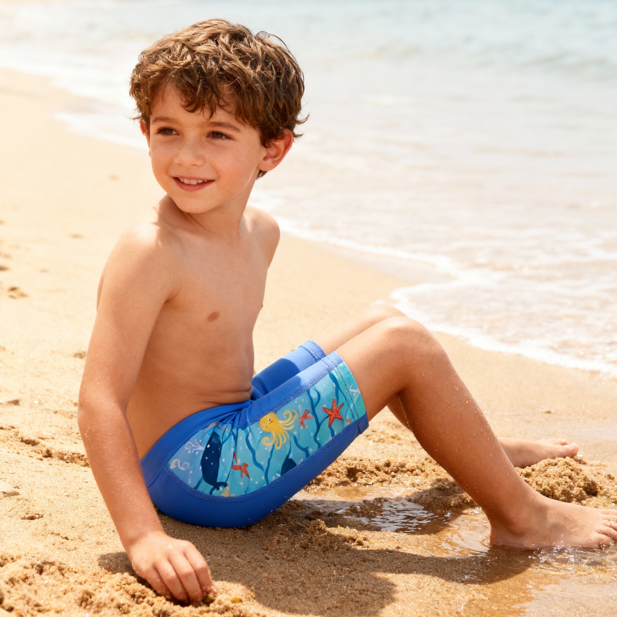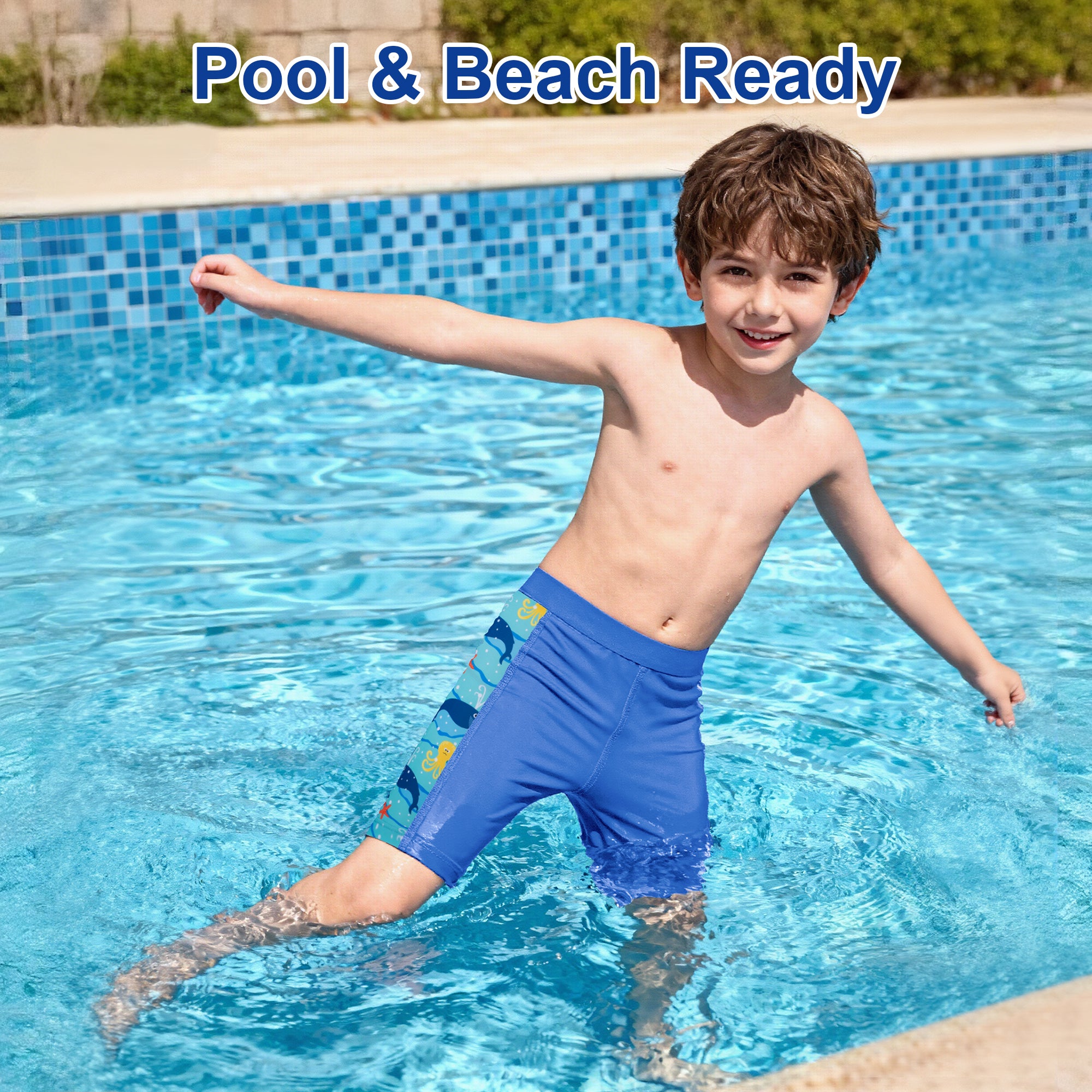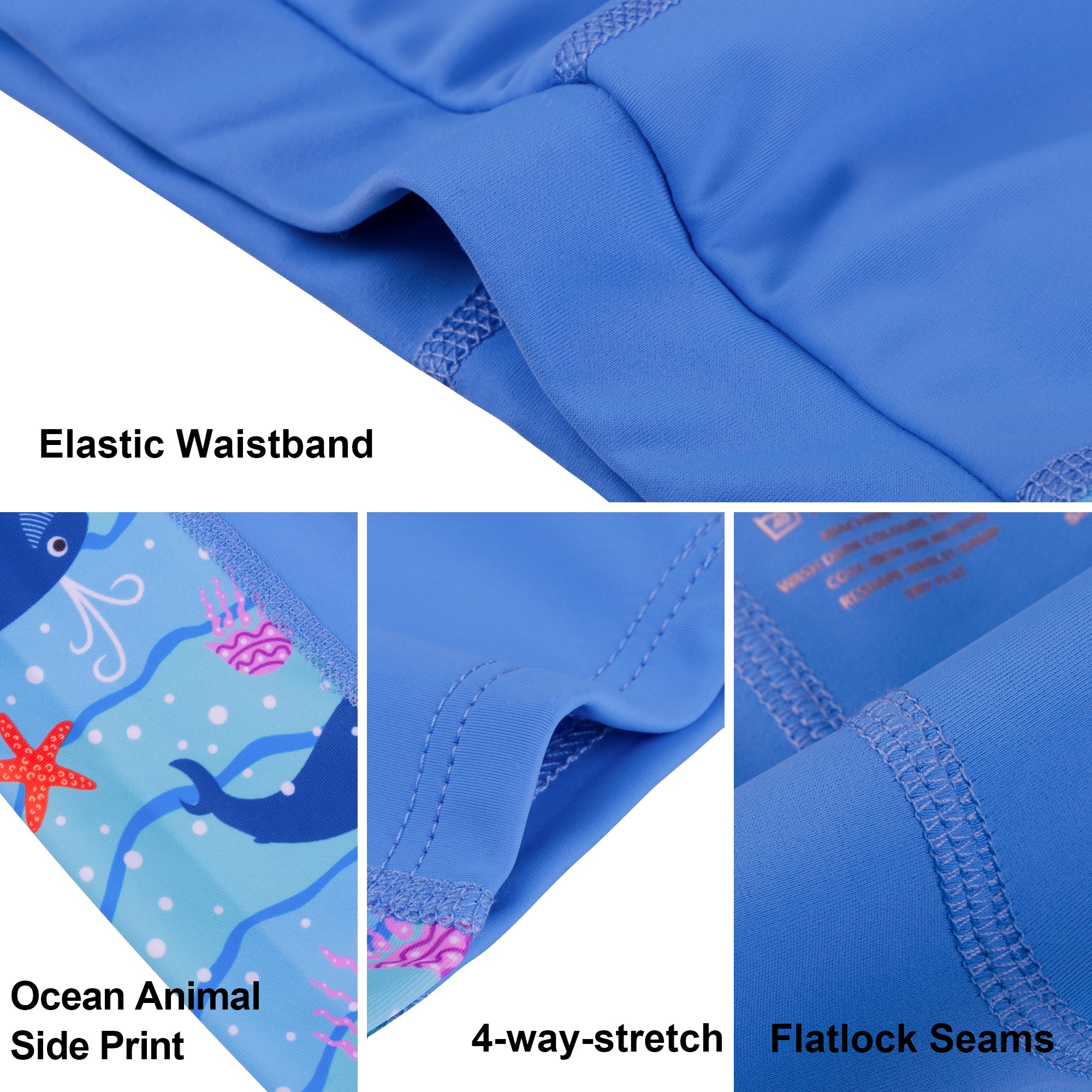A wide elastic waistband ensures a snug yet comfortable fit that stays securely in place during dynamic movement, whether swimming laps or making quick turns. For a perfect fit, we recommend sizing up if your child is between sizes.