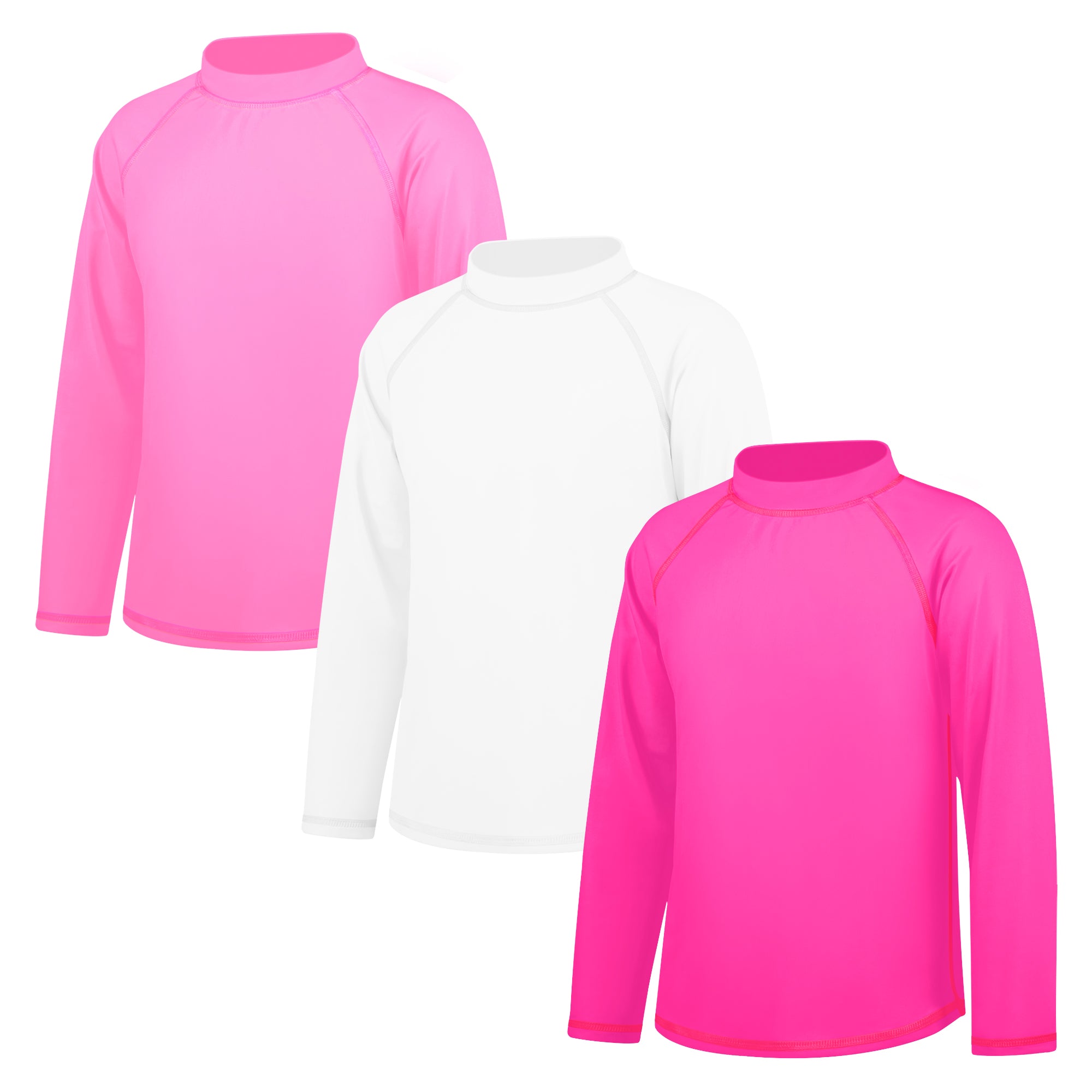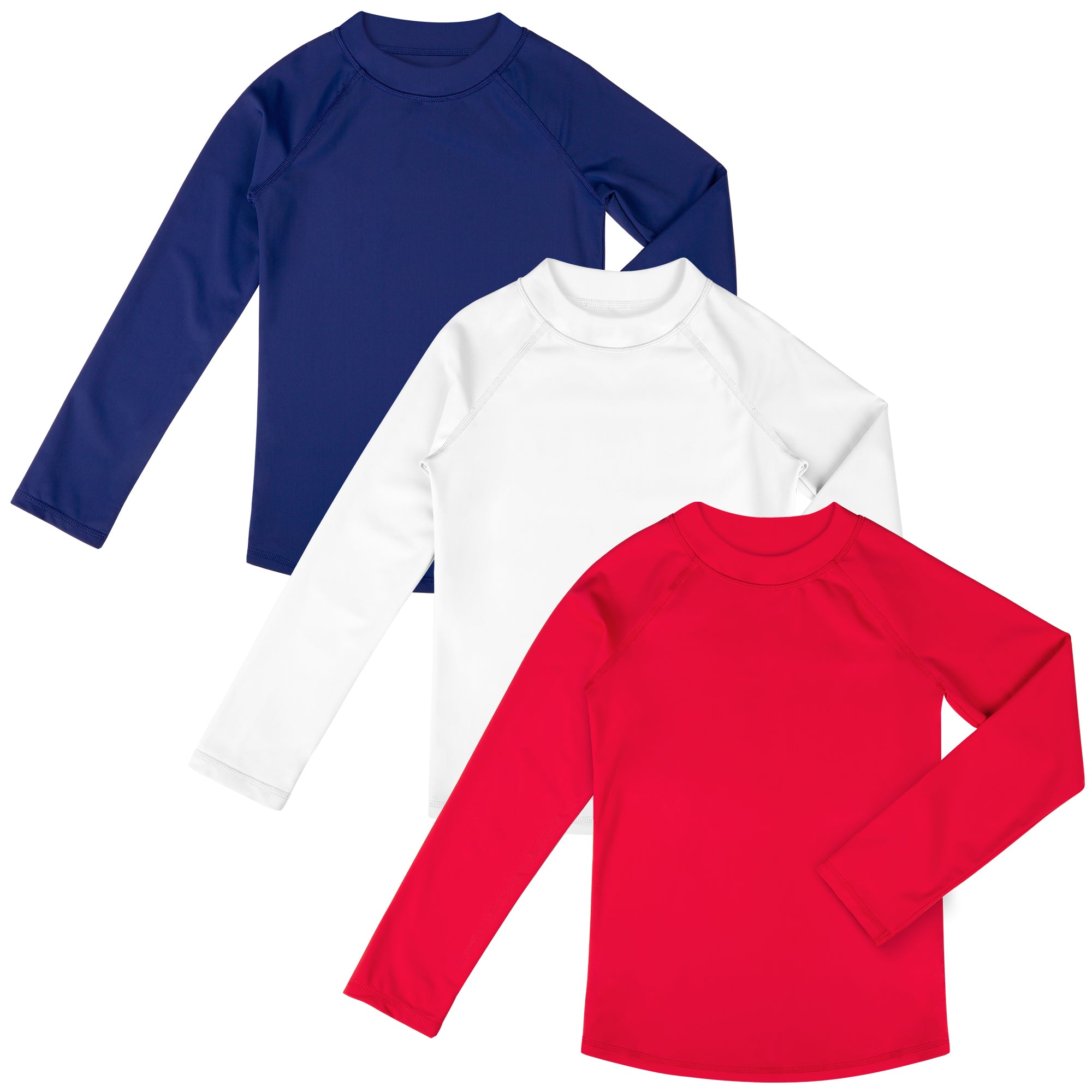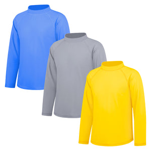 3-Pack Kids' Long Sleeve Rash Guards | UPF 50+ Sun Protection Swimwear & Surf Tops | for Boys & Girls
