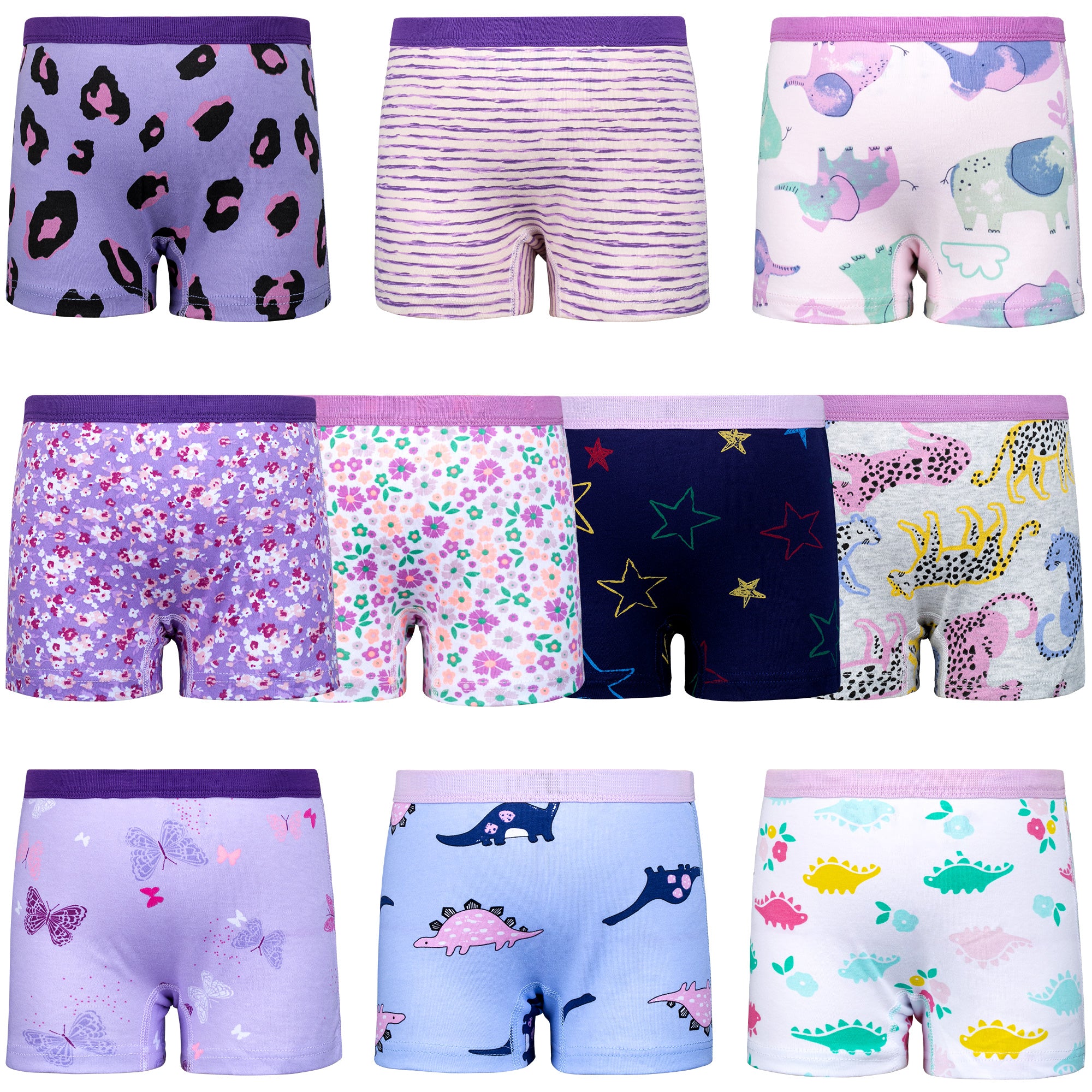 BIG ELEPHANT 10-Pack Girls Cotton Boxer Briefs Underwear – Soft, Breathable Toddler Panties (Sizes 3T-10Y)