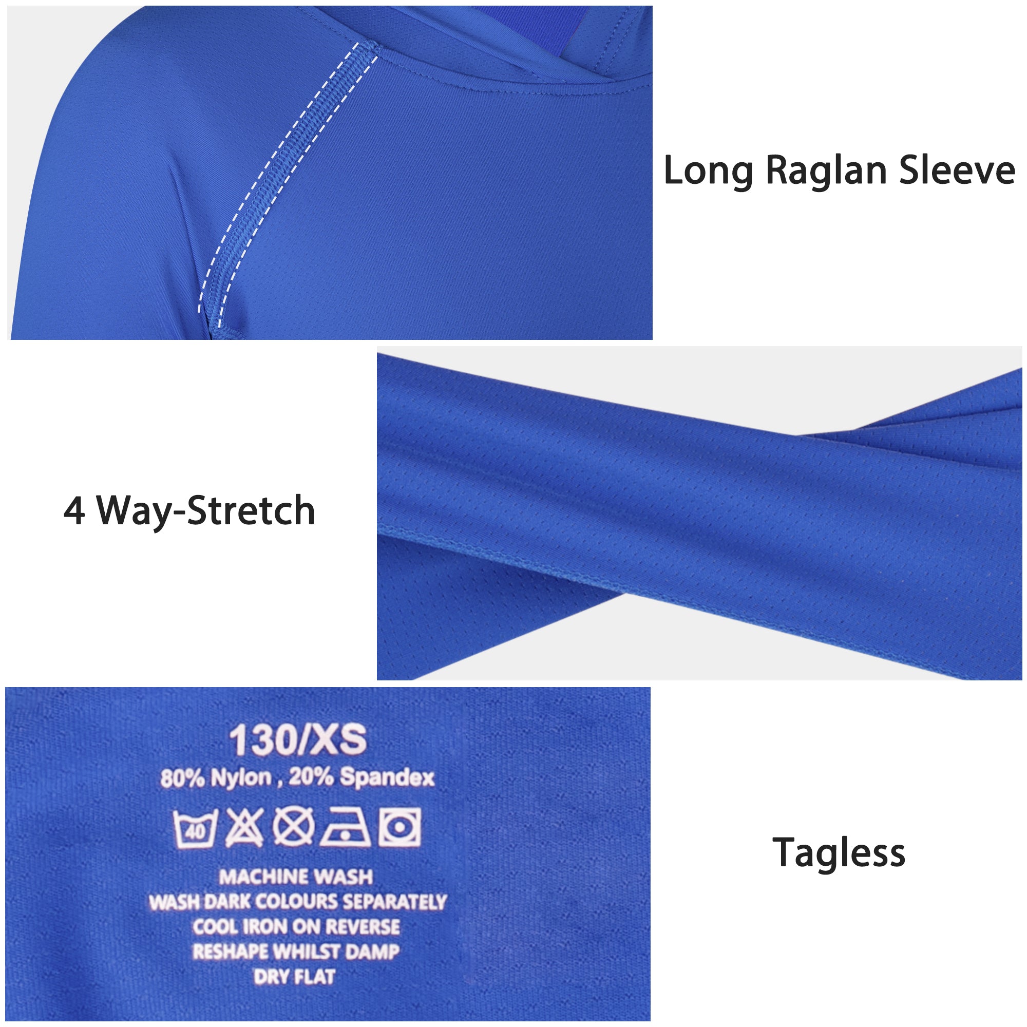 Tagless & Chafe-Free Design: A tagless neckline, raglan sleeves, and smooth seams prevent irritation and allow unrestricted movement. The quick-drying fabric keeps your child comfortable all day.