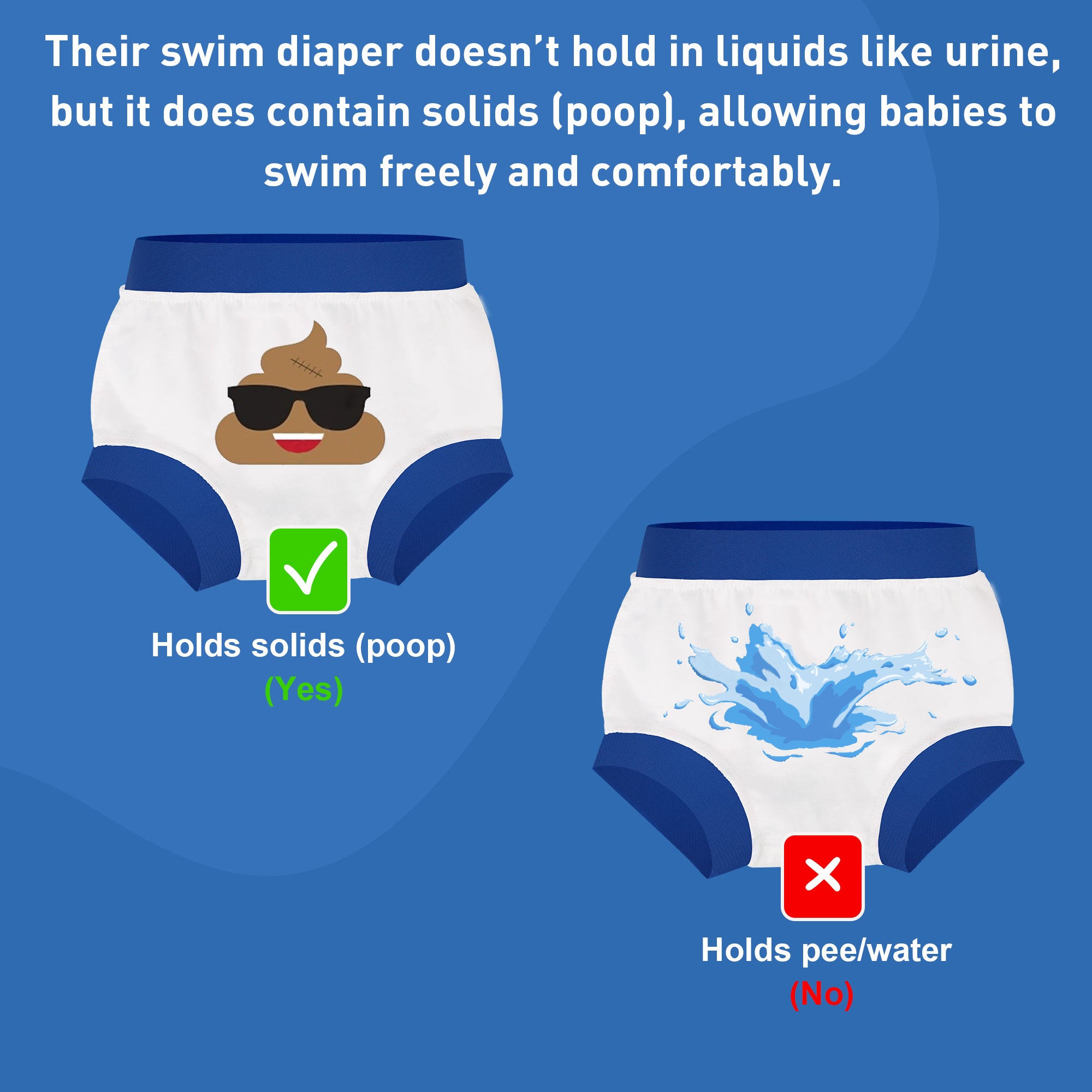 The swim diapers are designed with elastic at the waist and leg openings to ensure a secure and snug fit during water activities. This elastic design makes them easy to put on and take off while keeping your baby comfortable and protected.
