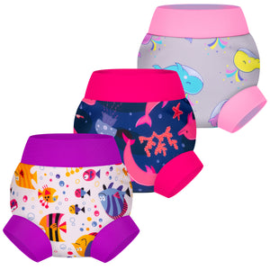 BIG ELEPHANT 3-Pack Reusable Swim Diapers, Adjustable, Washable, and Waterproof for Boys and Girls, Sizes XS-XXL