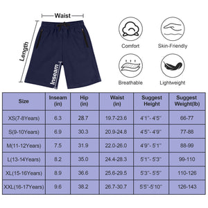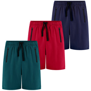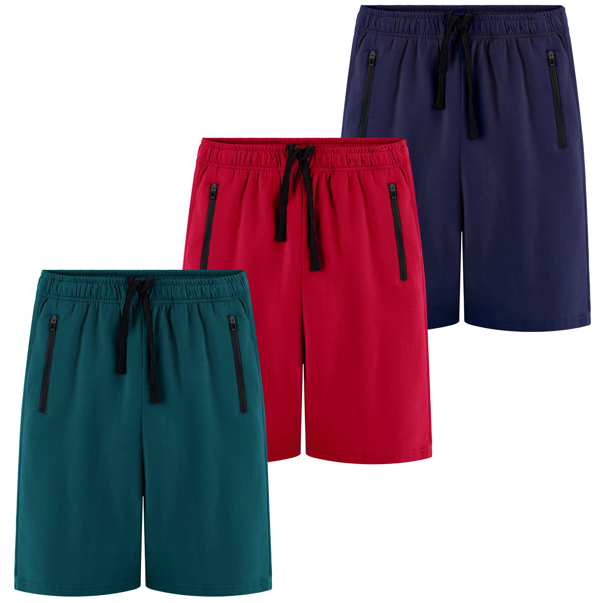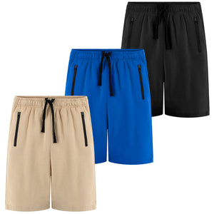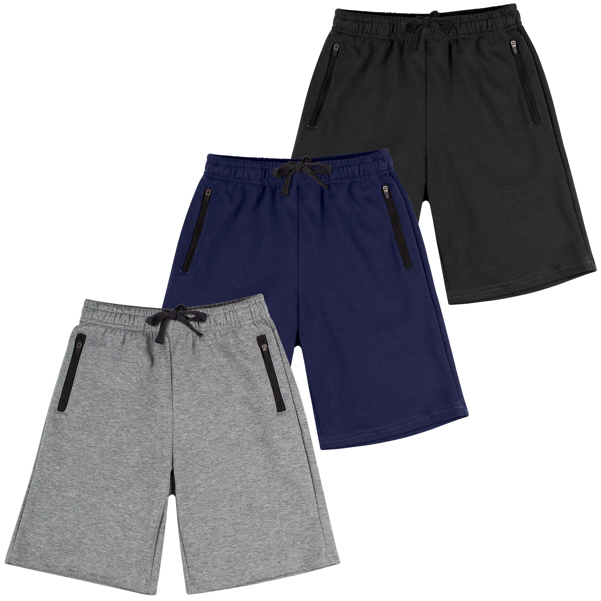 BIG ELEPHANT Boys' Active Shorts 3-Pack - Built with Zipper Pockets & Adjustable Drawstring, Youth Sport & Casual Wear (Sizes 7-17 Years)