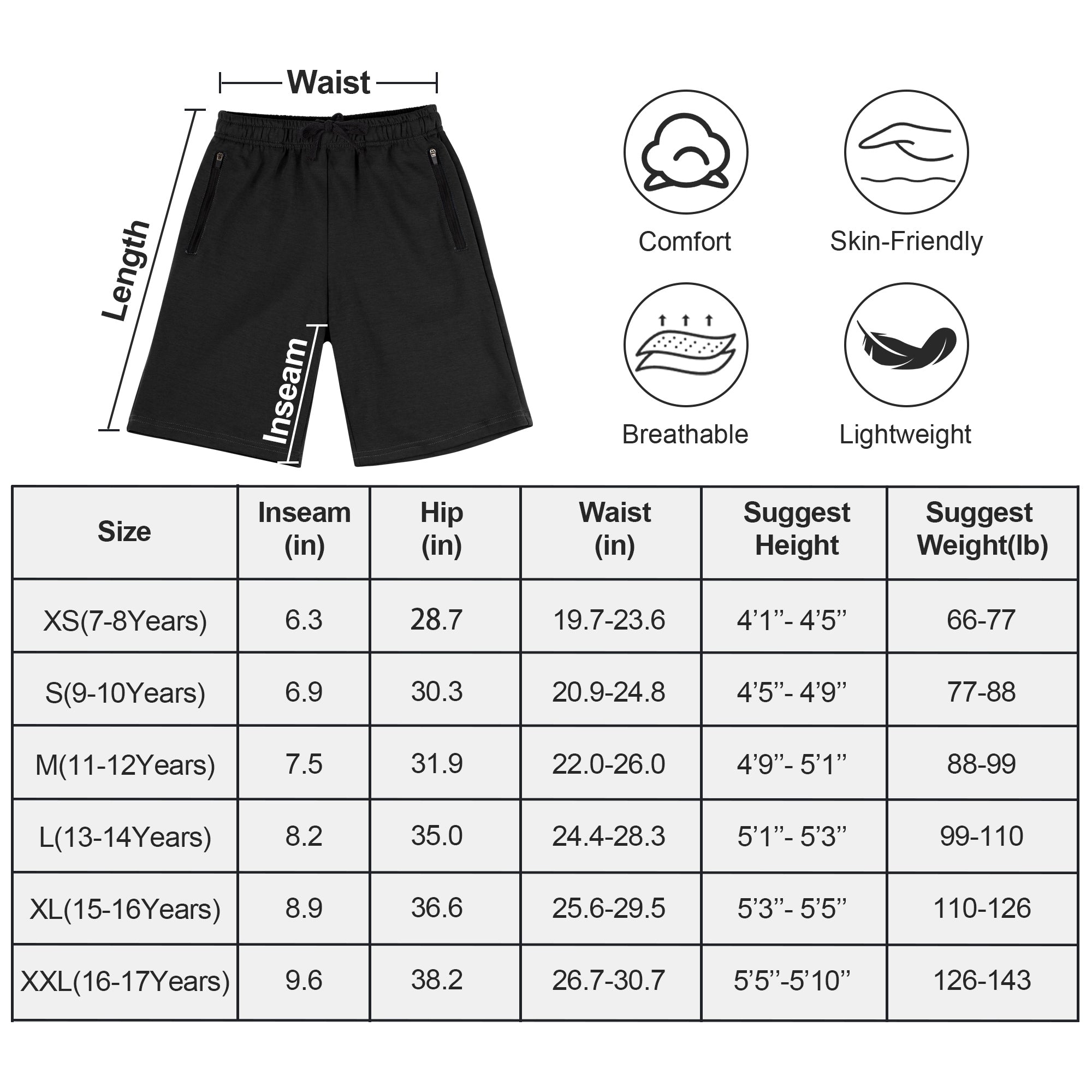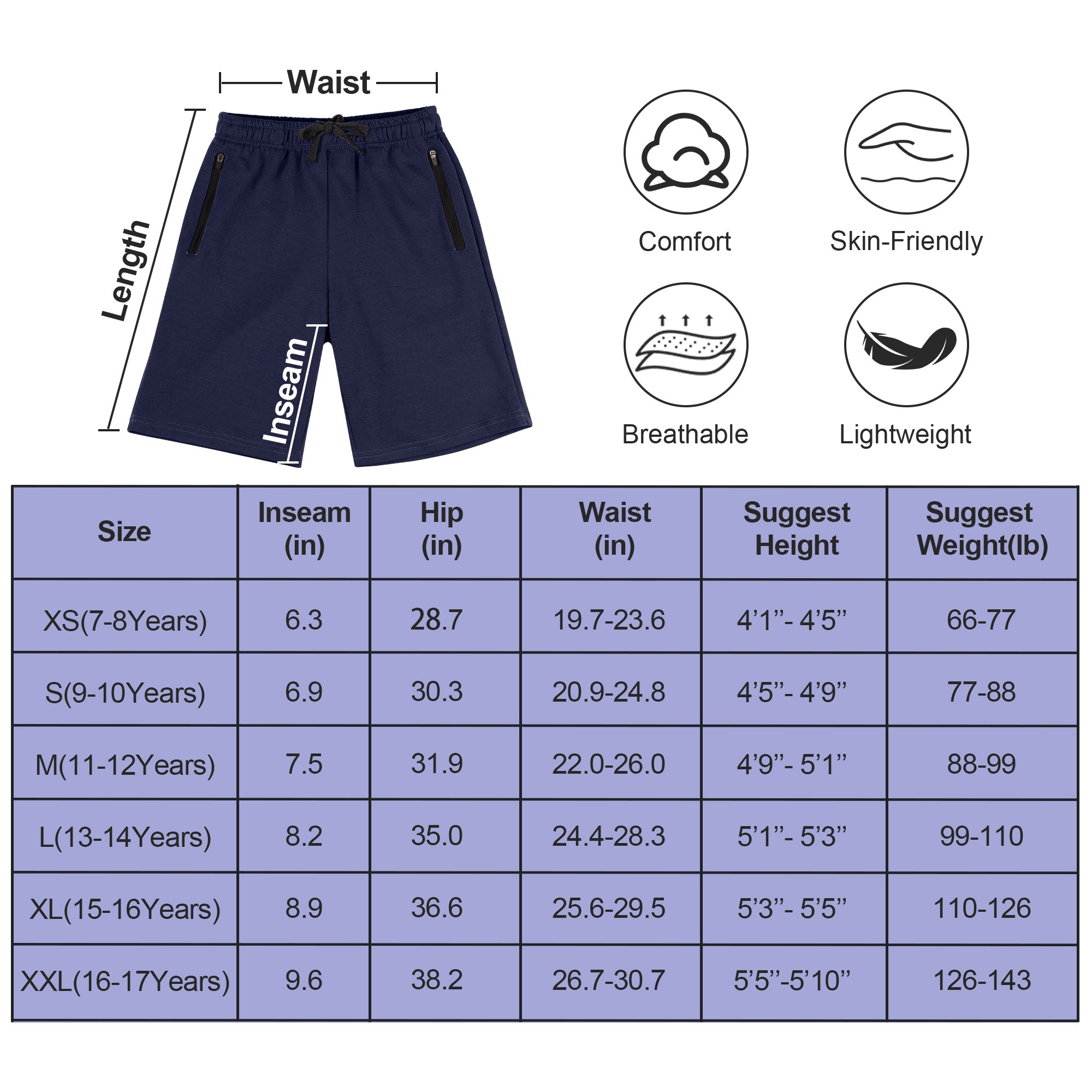 Home BIG ELEPHANT Boys' Active Shorts 3-Pack - Built with Zipper Pockets & Adjustable Drawstring, Youth Sport & Casual Wear (Sizes 7-17 Years)