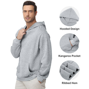 Men's Hooded Sweatshirt – Soft Lightweight Cotton Pullover Hoodie, Solid Color Long Sleeve for Casual Wear and Layering