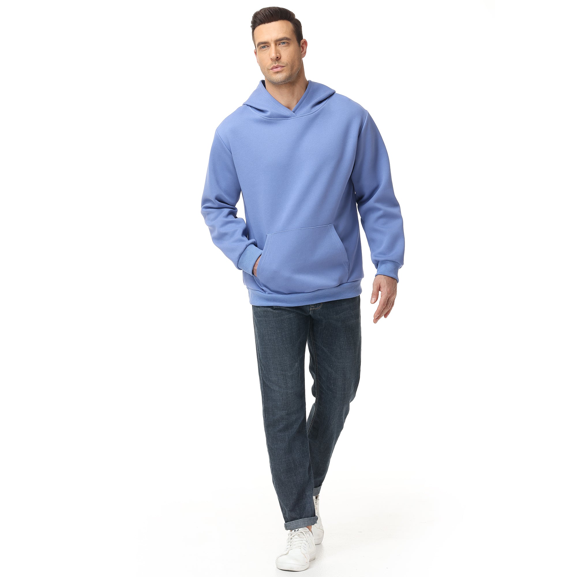 Men's 100% Cotton Hoodie – Double-Layer Pullover Sweatshirt in Solid Color, Long Sleeve for Year-Round Casual Wear
