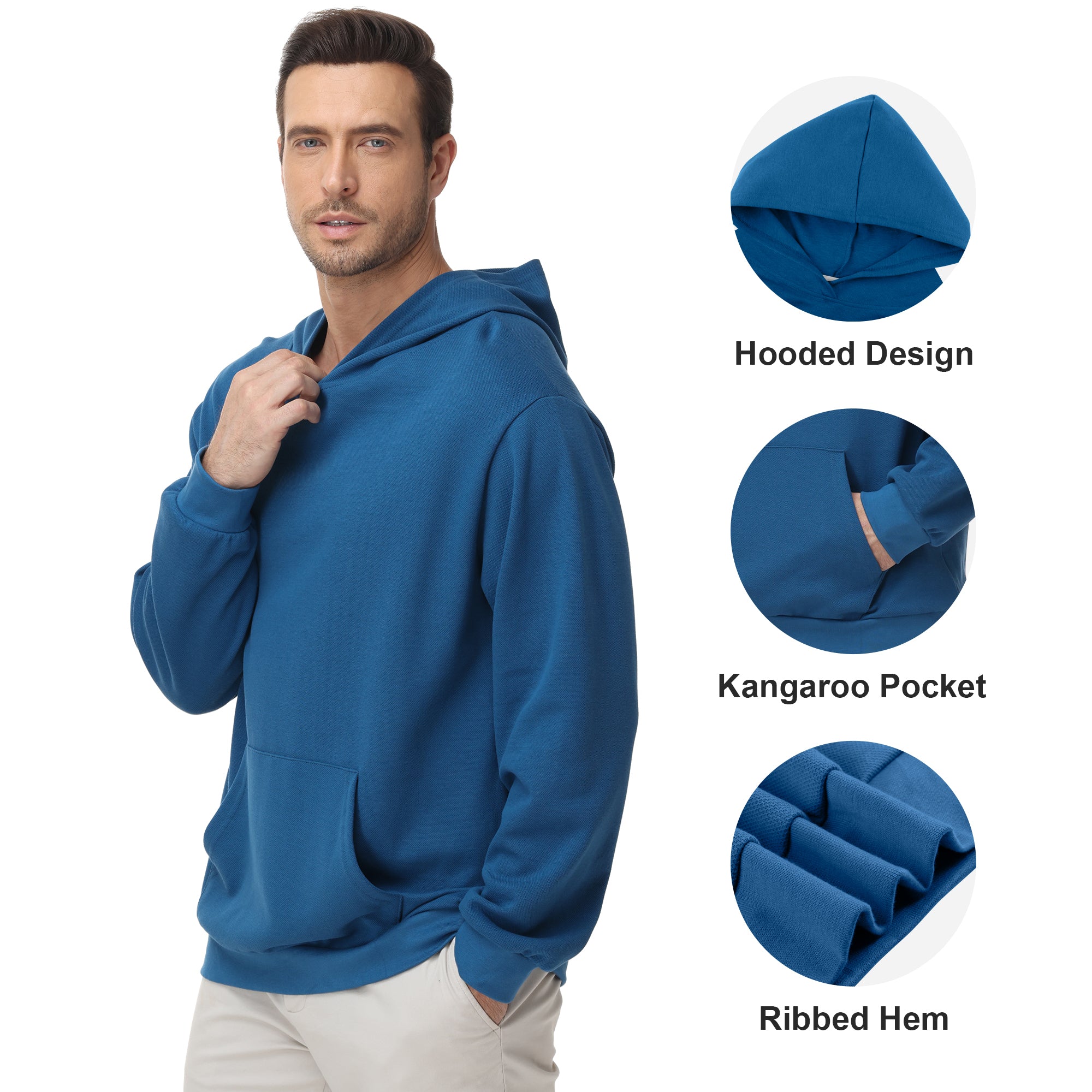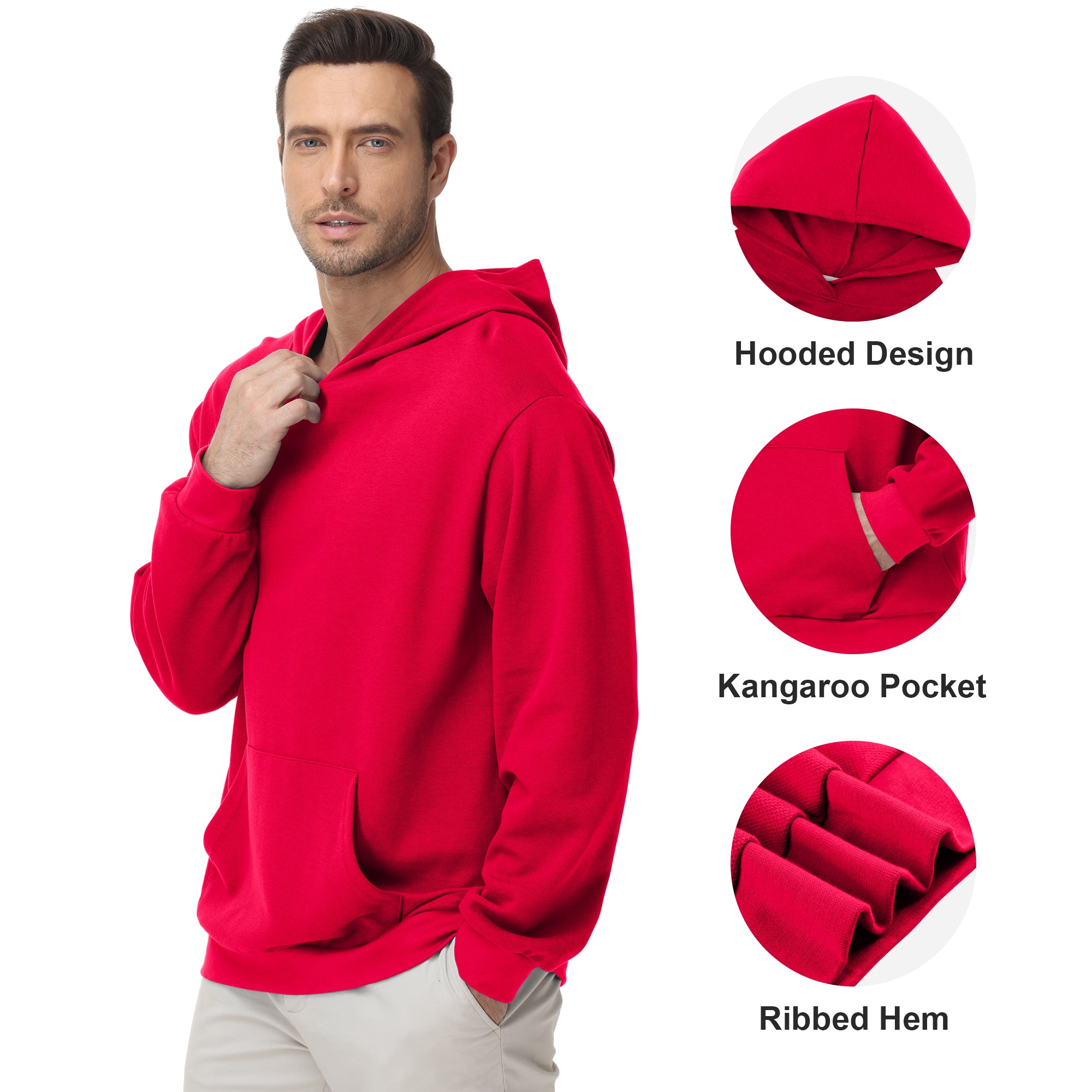 Men's Hooded Sweatshirt – Soft Lightweight Cotton Pullover Hoodie, Solid Color Long Sleeve for Casual Wear and Layering