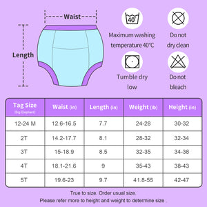 Ergonomic Design: The elastic waistband and cuffs ensure a comfortable and secure fit, making them easy for children to put on and take off on their own, fostering independence. Their reusable nature makes them not only an economical and environmentally friendly alternative to disposable diapers, but also a sustainable and environmentally friendly way to raise children.