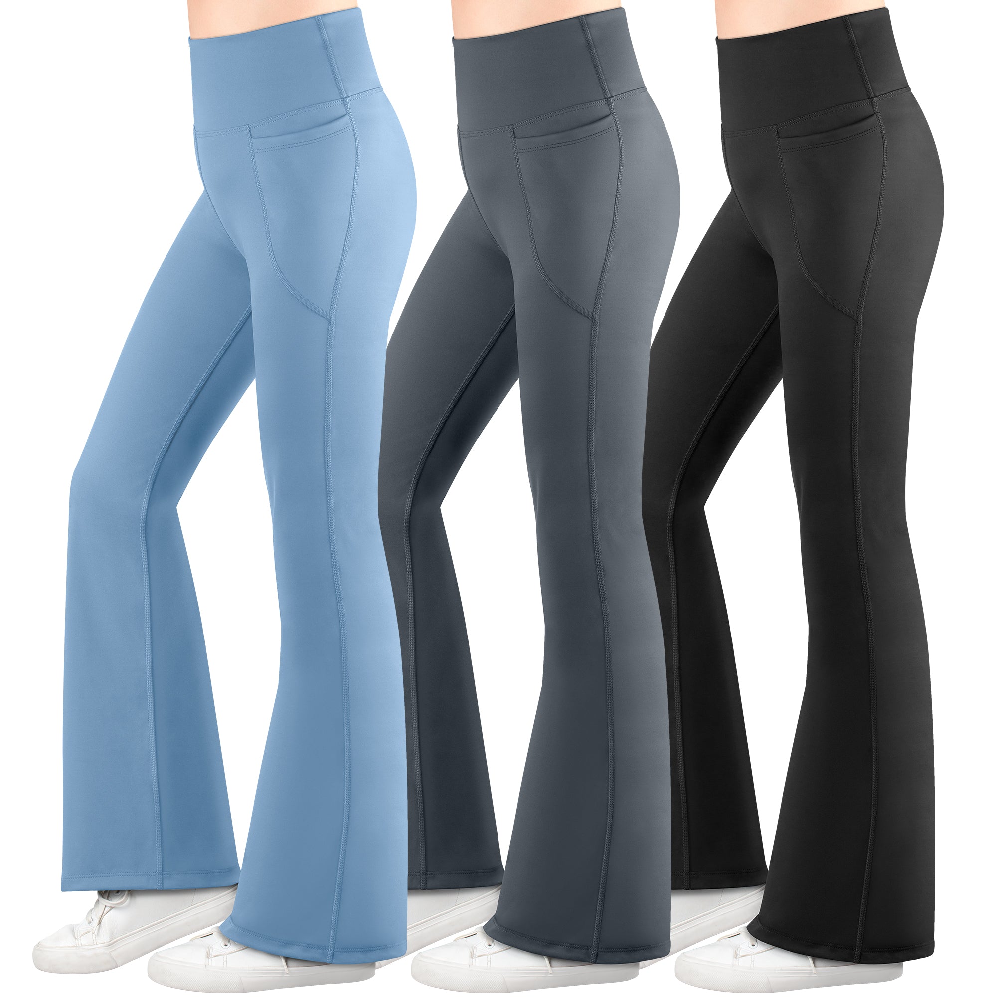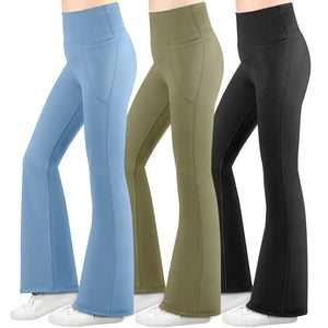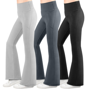 BIG ELEPHANT 3-Pack Girls’ Flared Pants with Pockets – High Waisted Bell Bottom Leggings for School, Dance & Everyday Wear