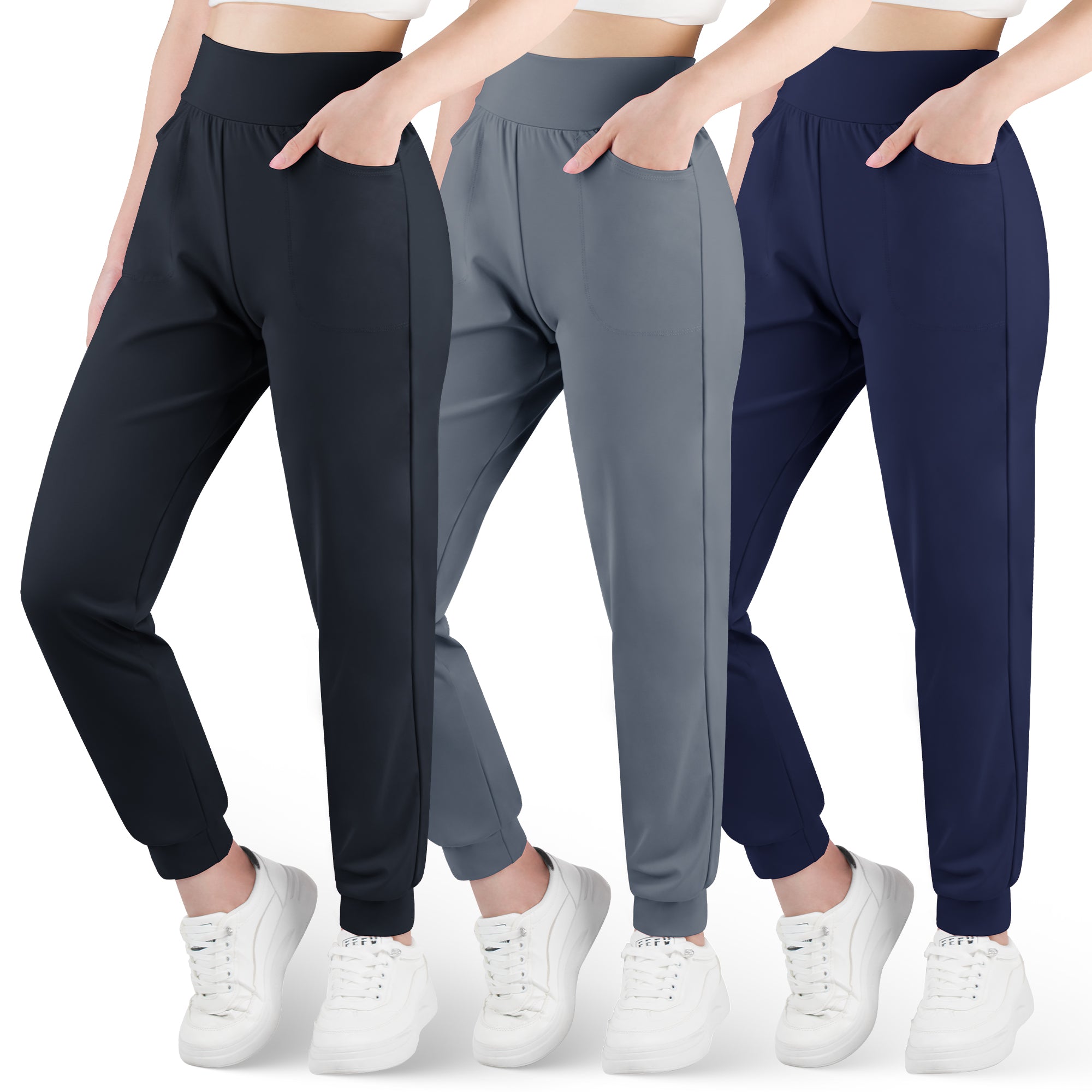 BIG ELEPHANT 3-Pack Girls’ High Waist Jogger Pants with Pockets –Kids Athletic Sweatpants for Running, Yoga, and Everyday Wear, XS-XL