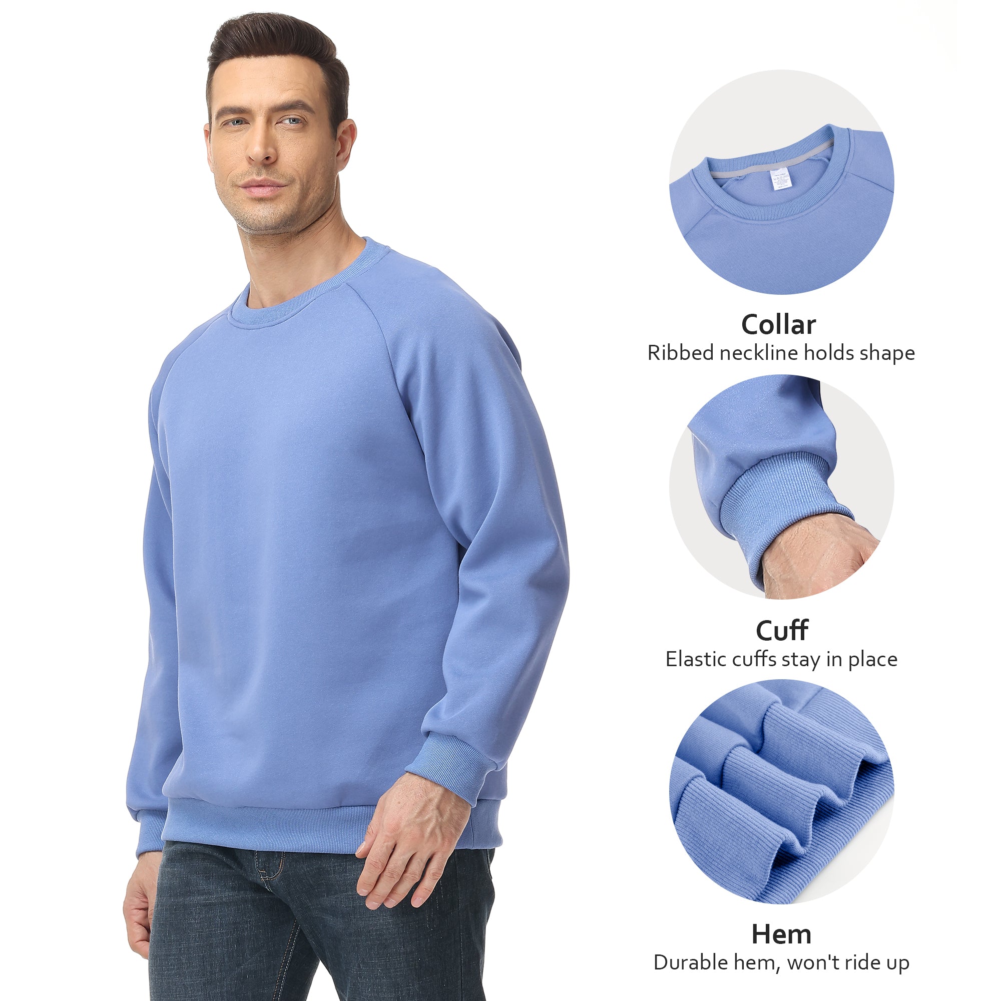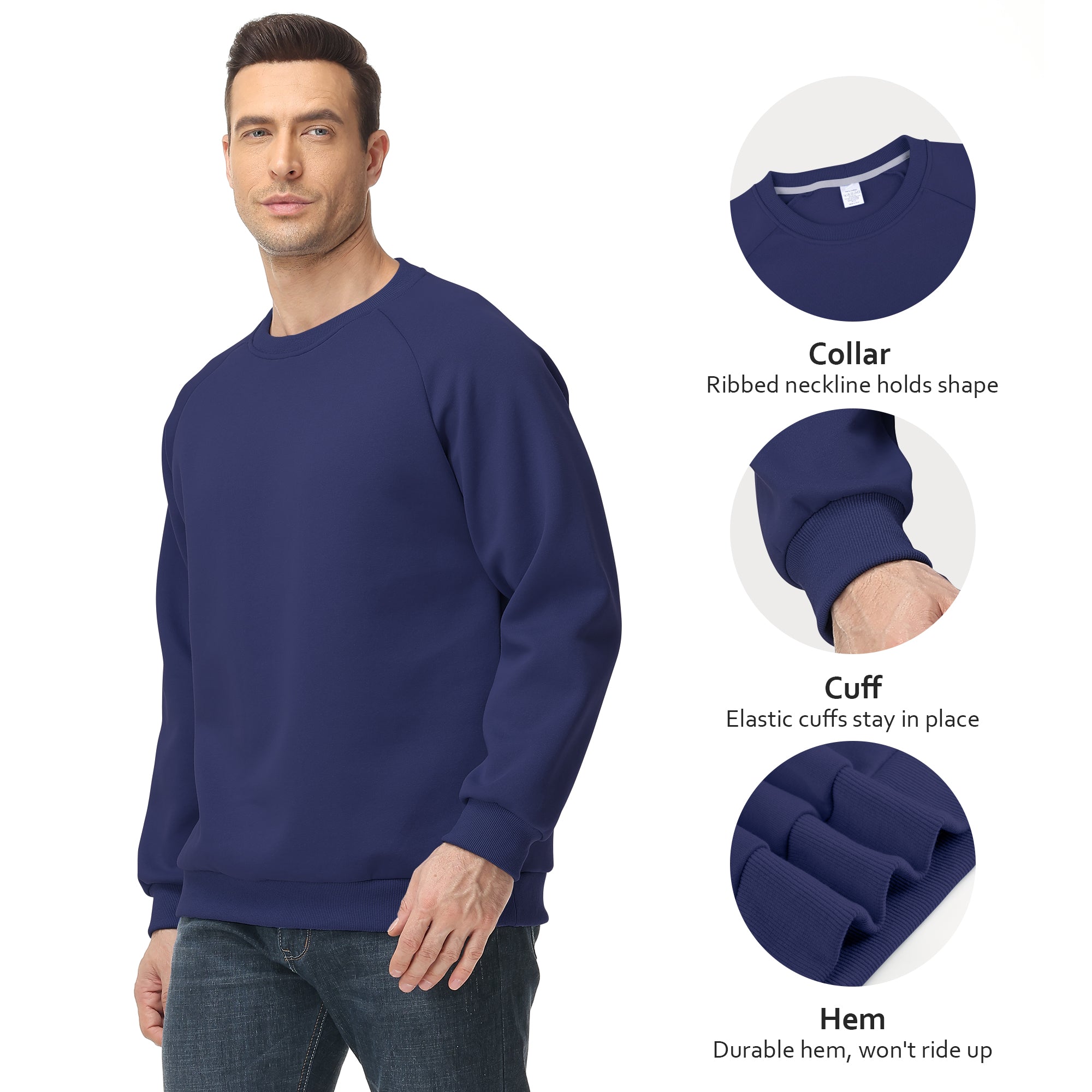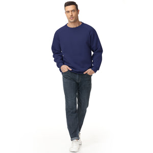 Men's 100% Cotton Crewneck Sweatshirt – Double-Layer Pullover for Comfort and Warmth, Solid Color Long Sleeve for Casual Wear