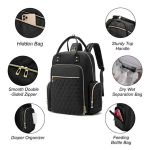Multifunction Baby Diaper Bag Backpack, Travel Maternity Nappy Bag for Moms, 12x7x16 Inches