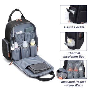 [Thoughtful Organization] Tailored to meet parents’ daily needs, this backpack includes specialized compartments for diapers, bottles, and wipes, along with multiple extra pockets to maximize storage space and easy access to essentials anytime.