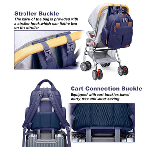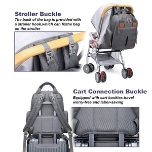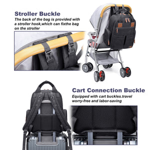 [Convenient Travel Features] The AGUDAN diaper backpack comes with adjustable shoulder strap buckles for easy attachment to strollers, plus a luggage strap on the back that securely fits over your suitcase handle — making travel more effortless and hands-free.