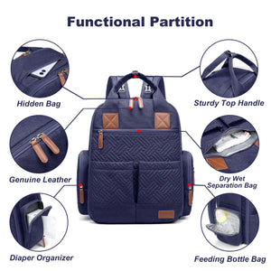 [Wet & Dry Separation Pocket] Designed with a front wet/dry divider pocket, this diaper tote backpack helps you neatly separate soiled clothes, bibs, or towels from clean items, keeping everything hygienic and organized when on the go.
